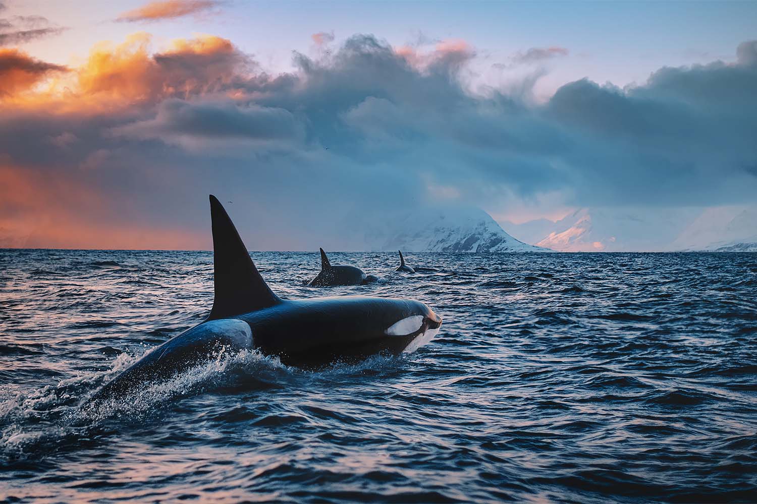 Orcas, also known as killer whales, are apex predators and highly intelligent and social creatures. During the winter season, from November to February, they can often be seen in Icelandic waters because they follow herring migration, their preferred food source. Orcas hunt and feed in groups and are known for their striking black-and-white appearance and complex social structures. If you're interested in observing these fantastic creatures, head to the herring-rich areas of the East Fjords, the Snaefellsnes Peninsula, or the South Coast.