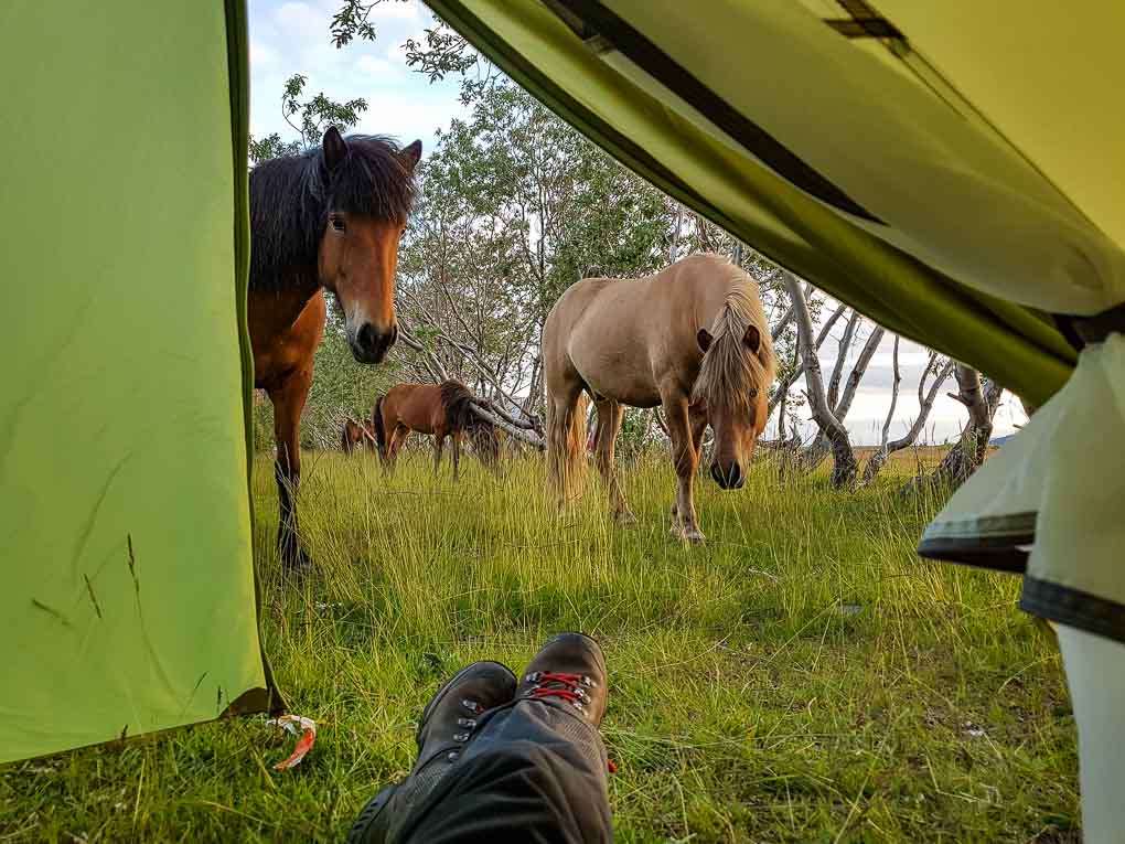 Some curious Icelandic horses at the campsite at Thorsmork, Iceland