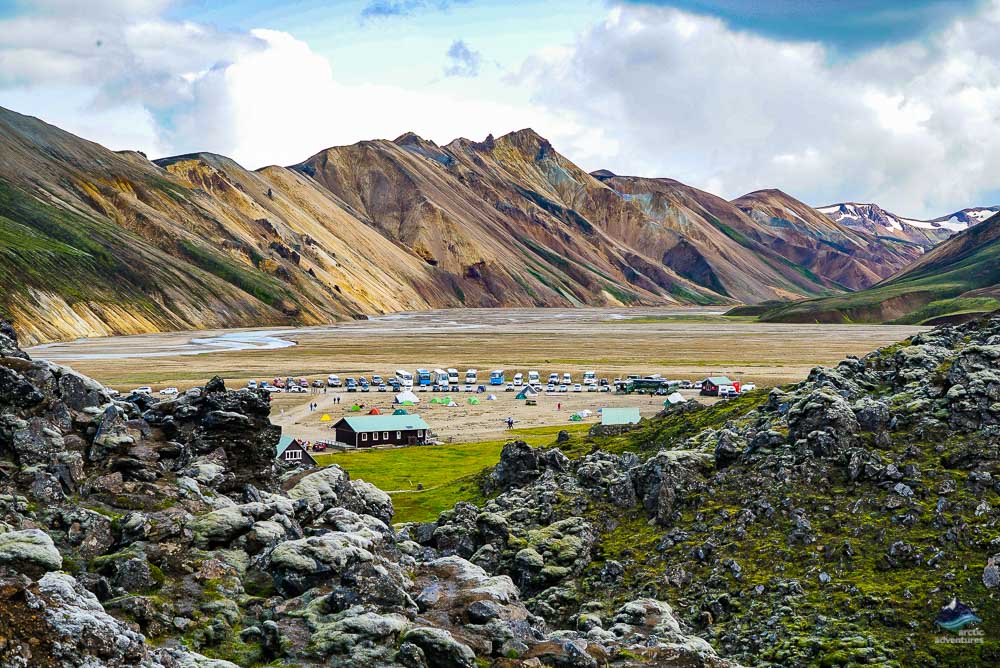 Campsite in the Icelandic Highlands, the geothermal valley of Landmannalaugar