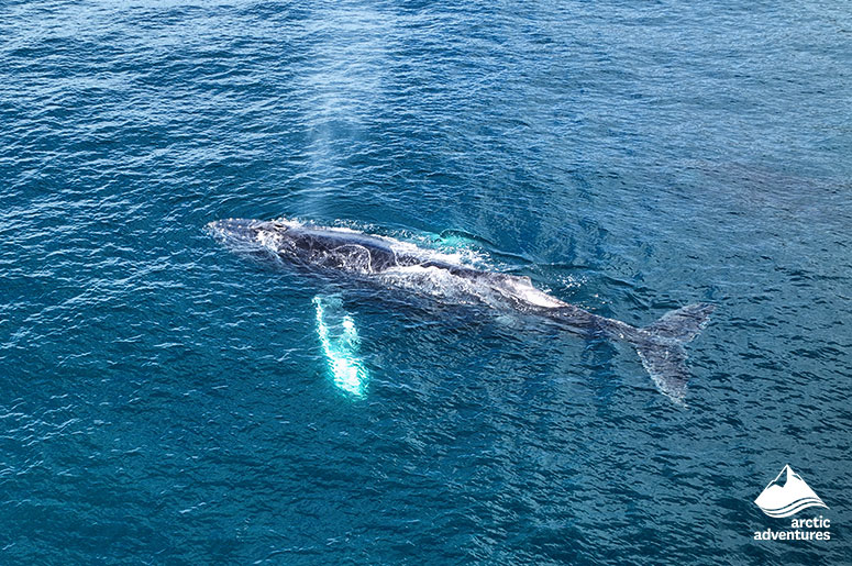 Humpbacks are one of the most common species to spot when whale watching in Iceland due to their playfulness and habits of coming close to shore. Throughout the winter, the majority of them move to warmer waters, including the Caribbean. Some are known to spend the winter in Icelandic waters, though. Offshore and inland in Iceland, humpback whales are common. They can often be seen tail slapping, jumping and sometimes feeding just off the coast. Their blow (spout) can reach up to 3m, which helps them be seen from afar.