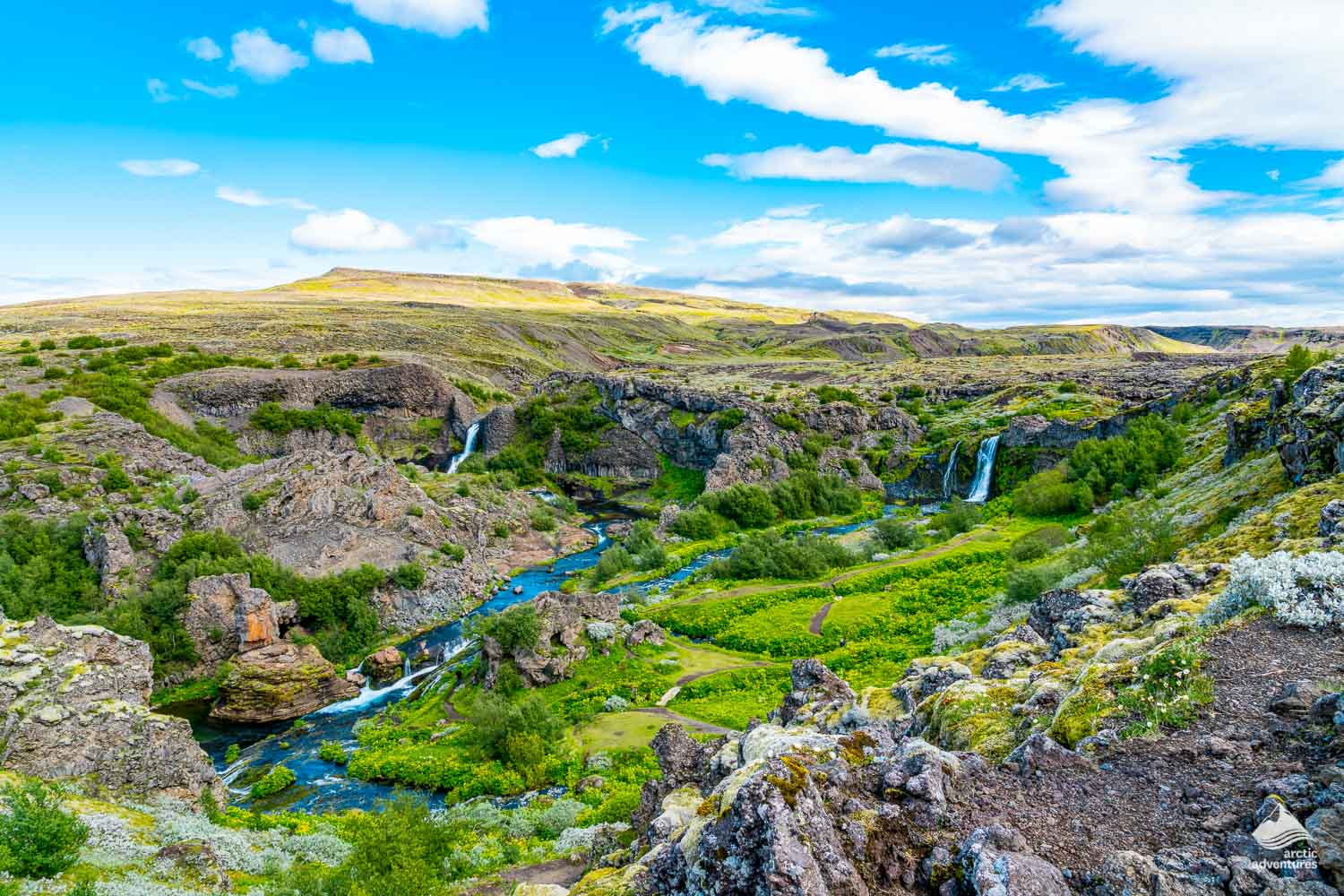 Next, drive for 10 minutes before turning right on the number 32. Then drive for 25 minutes until you turn onto Road 327. From there it’s about a 30-minute drive to Stöng. At this point, you’ll have to take a short hike across Iceland’s beautiful landscape towards Gjáin Valley, where you can enjoy its pristine nature.