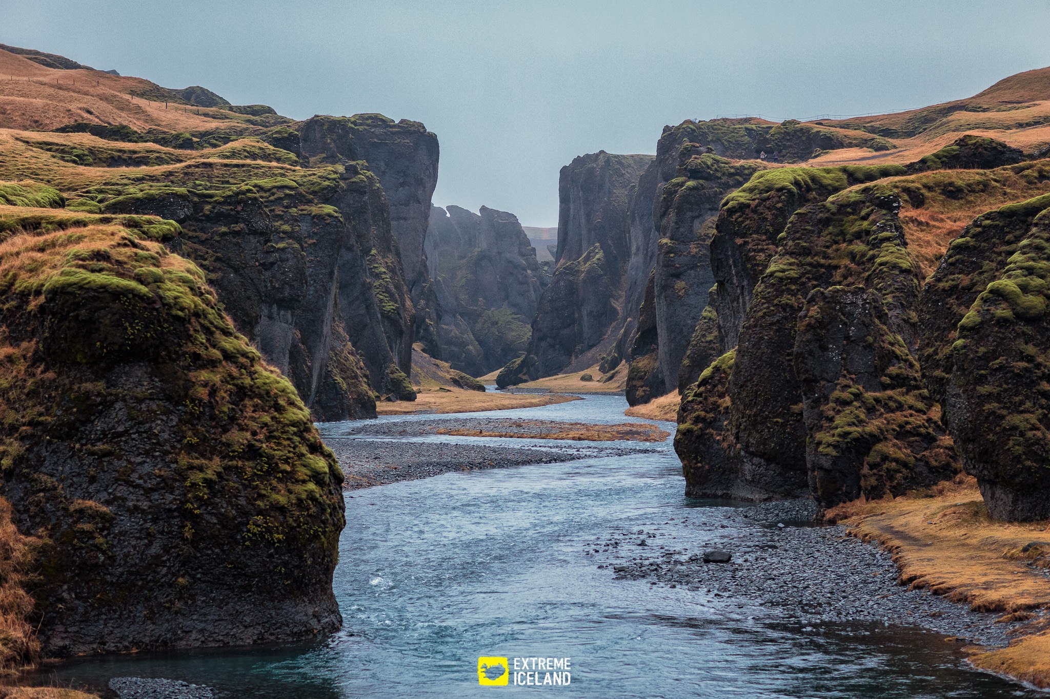 Visitors will be glad to know that it’s surprisingly easy to get to Fjaðrárgljúfur Canyon. If you’re traveling eastwards on the Ring Road towards Skaftafell, take a left turn onto Road 206 – it’s just before Kirkjubæjarklaustur village – and continue for two kilometers. You’ll come to a small intersection, continue left to reach the canyon. The final stretch of the road is gravel, so drive with caution.