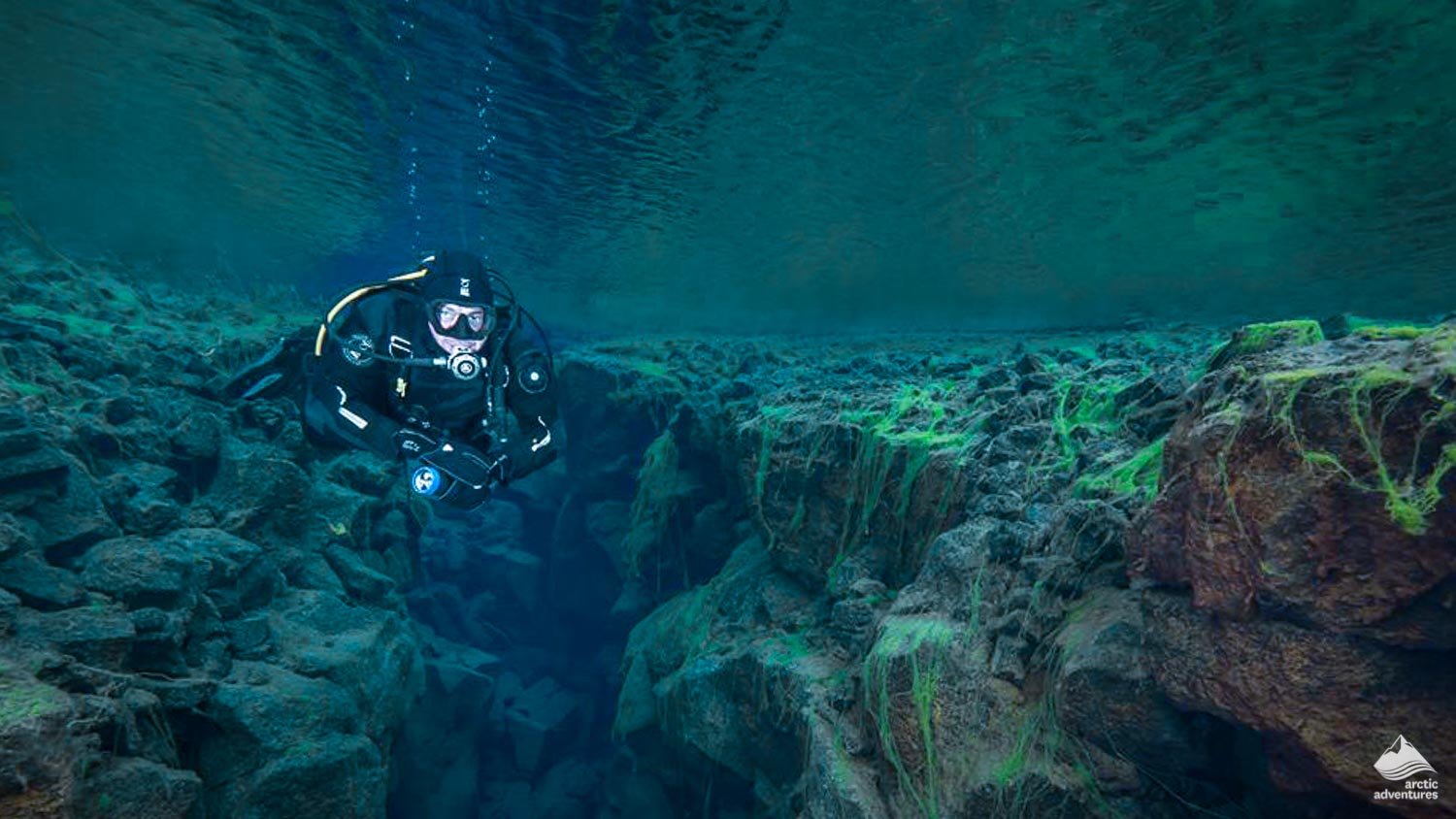 From the ground, Silfra Fissure might seem like an ordinary site, but wait till you put your head underwater!