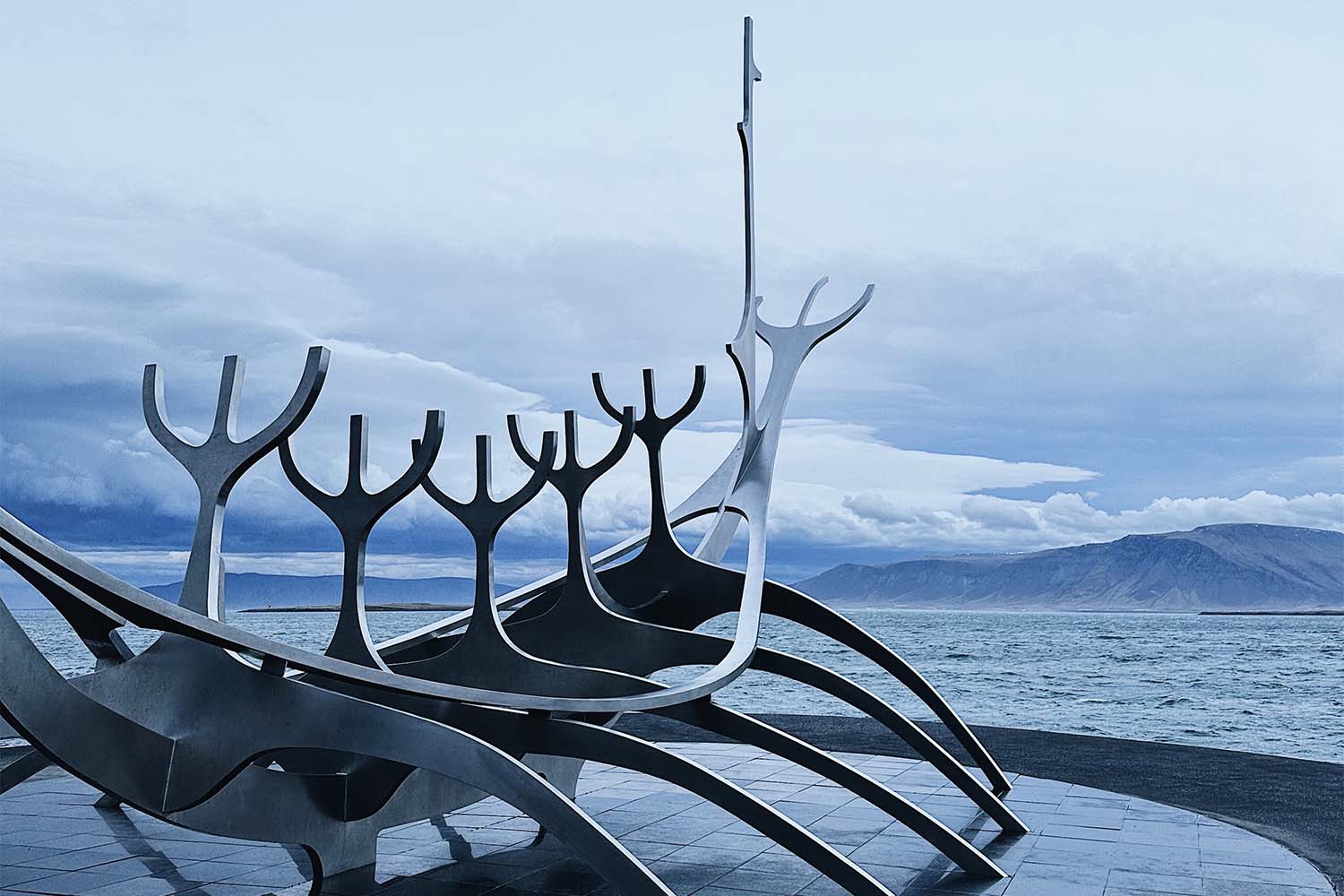 The Sun Voyager sculpture by Jón Gunnar Árnason located in Reykjavik