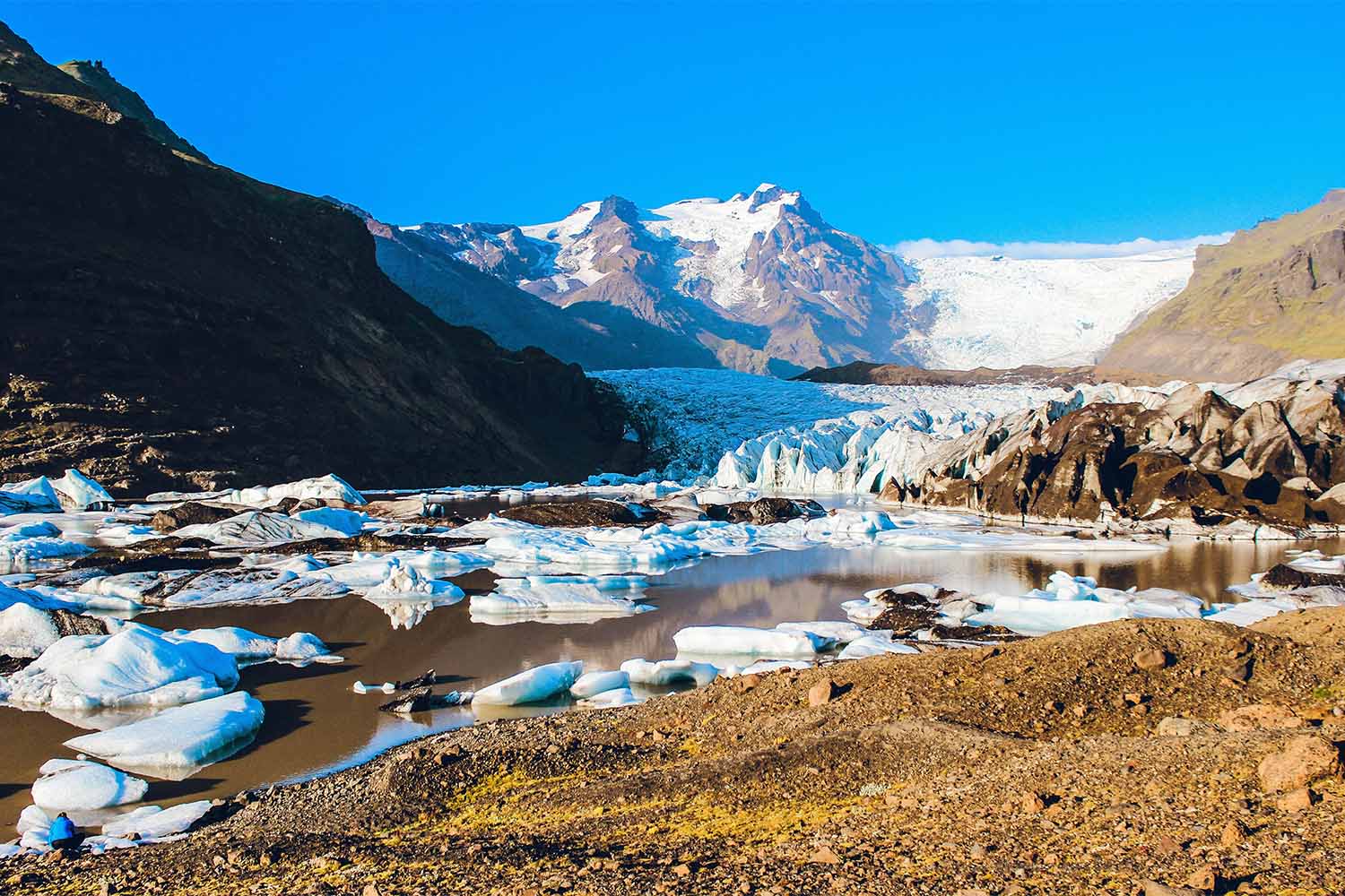 The main jewel of Vatnajökull National Park is the largest glacier in Europe of the same name, with a surface of 8,100 km². But let's not forget that the glacier is shrinking rather quickly because of climate change. Despite this, the glacier is so big that it has several ice tongues with their own name (Svínafellsjökull, Dyngjujökull, Skeidararjokull, to name a few). Vatnajökull has a lot to offer to its visitors. Here you can find the highest peak of Vatnajökull glacier, Hvannadalshnjukur, with a height of 2,110 meters. South coast Iceland and Vatnajökull are where Grímsvötn, an active volcanic system, is situated. This is why this place is known to be a literal spot of fire and ice. If you want to experience the South Coast and get to know these national parks like a local, then our 2-day guided South Coast tour is perfect for you. With pick-ups in the capital, it couldn't be easier to explore this incredible part of the country.