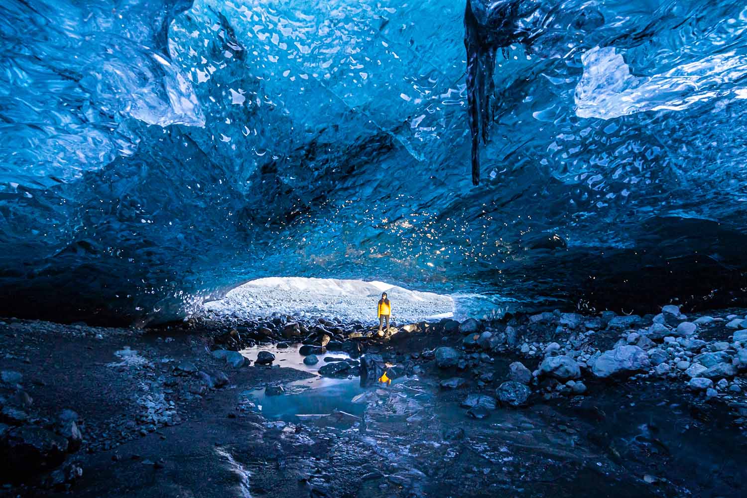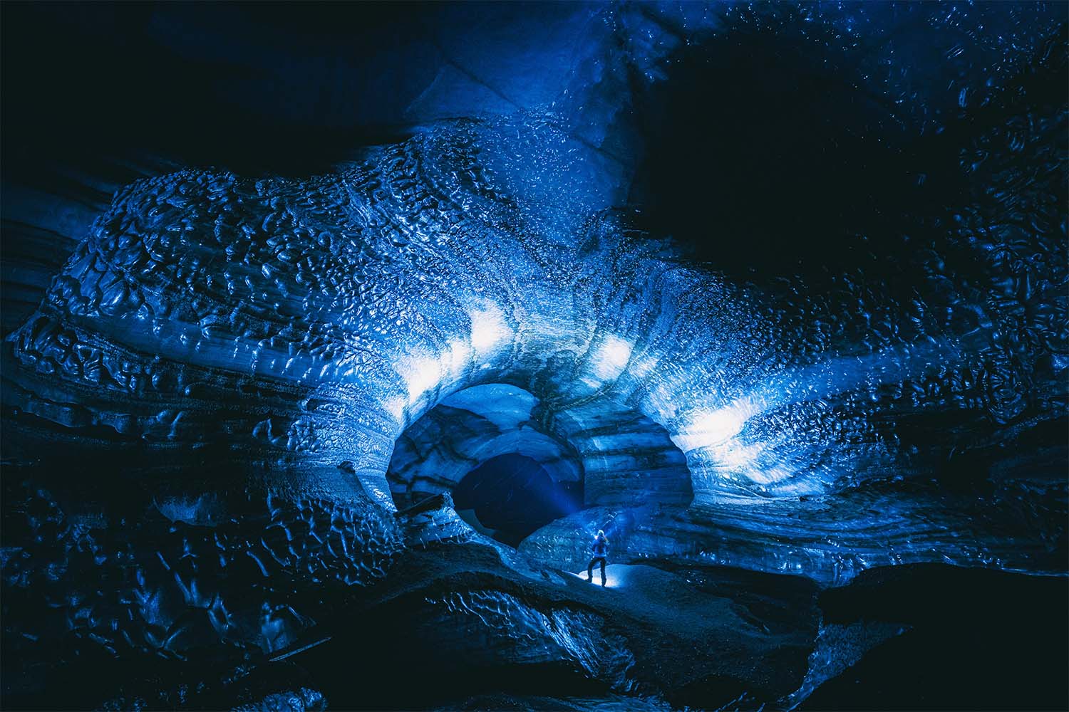 Crystal Ice Cave hidden in the Vatnajökull glacier