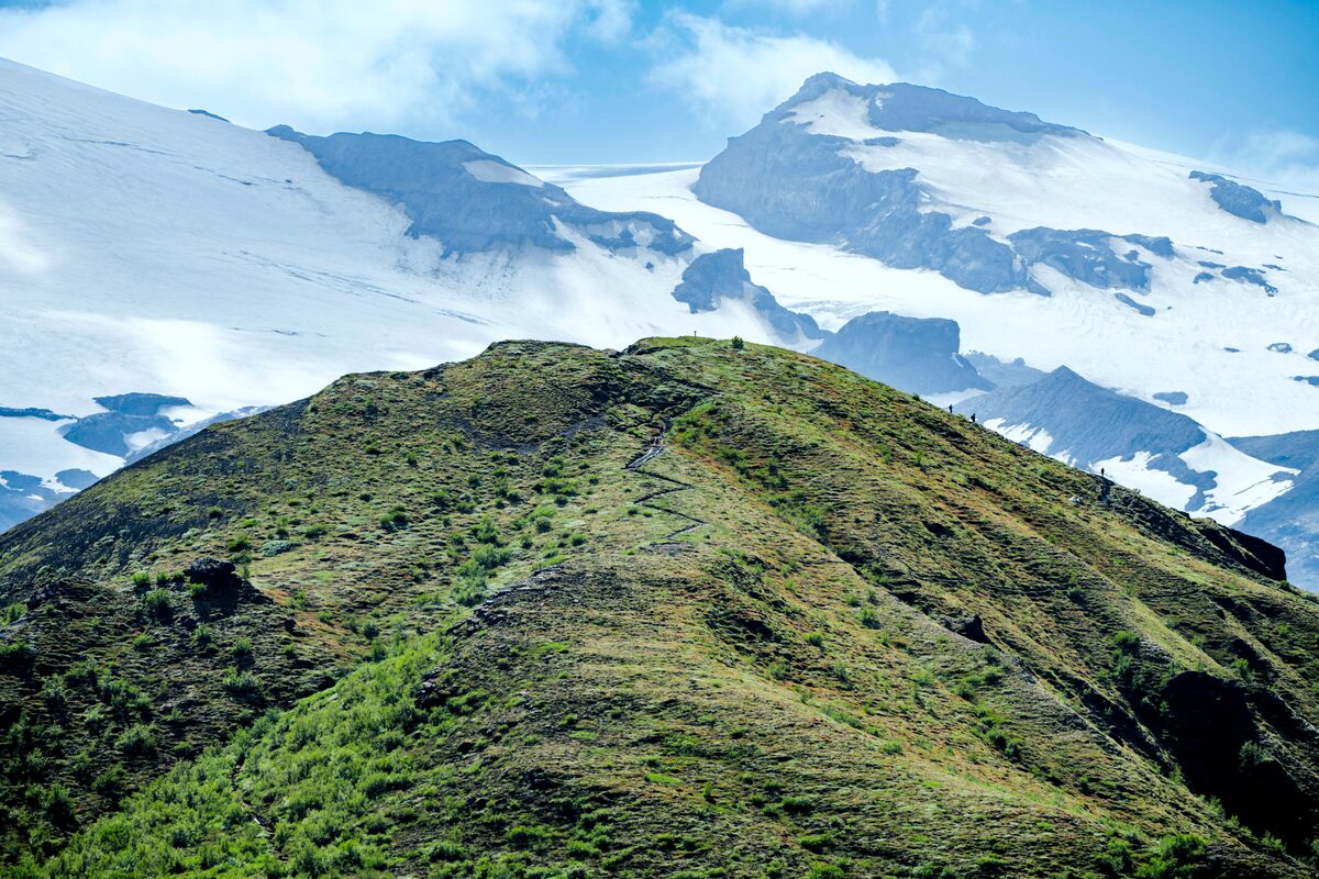 Summer trails wind through mossy ridges and glacier views. Source: Arctic Adventures.