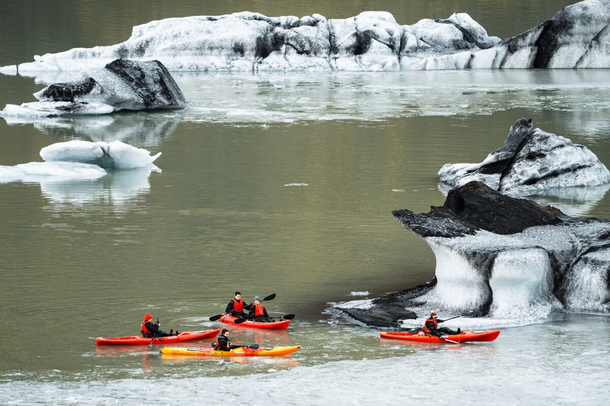 Paddling through glacier lagoons surrounded by floating ice in midsummer. Source: Arctic Adventures.