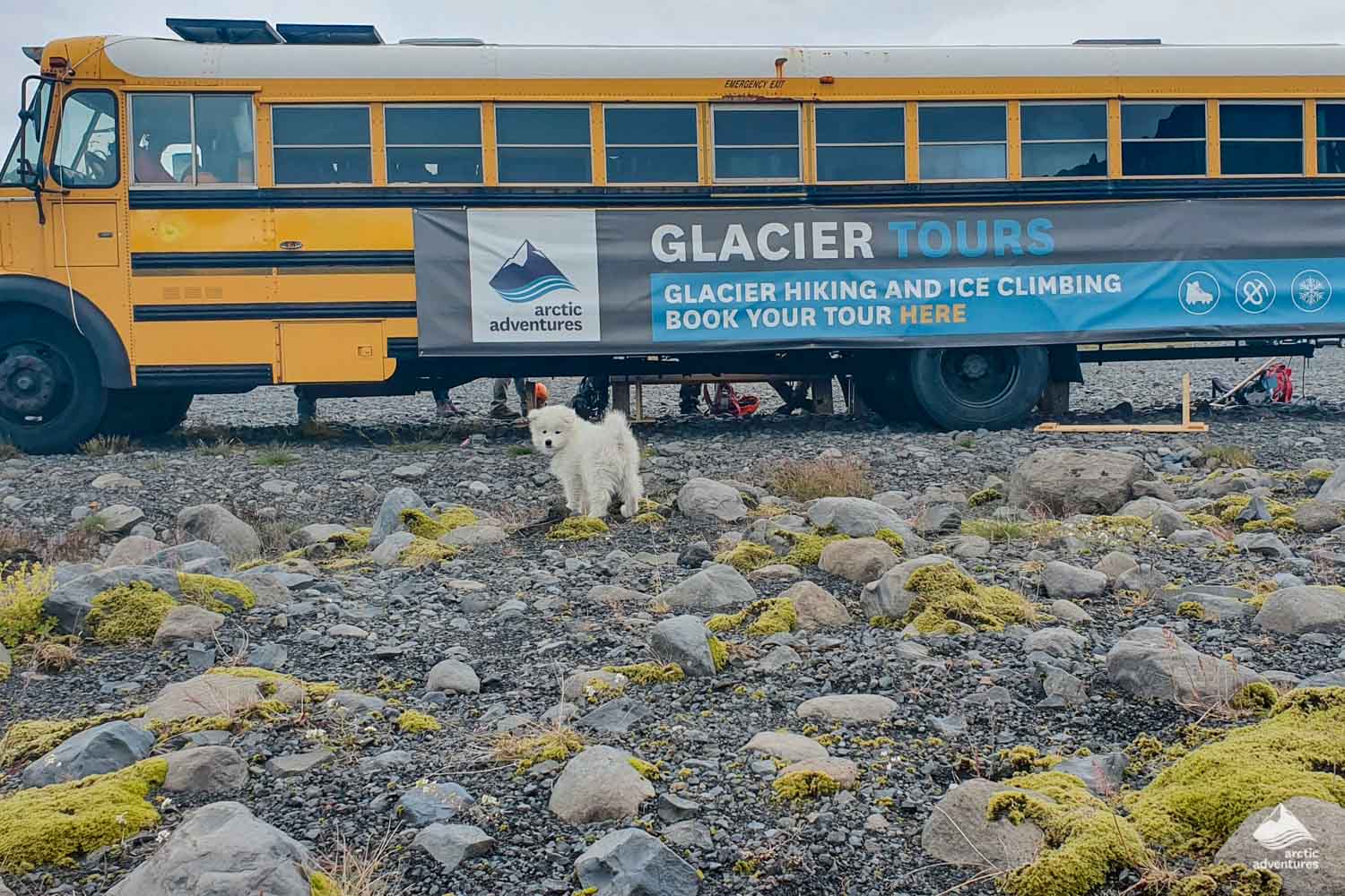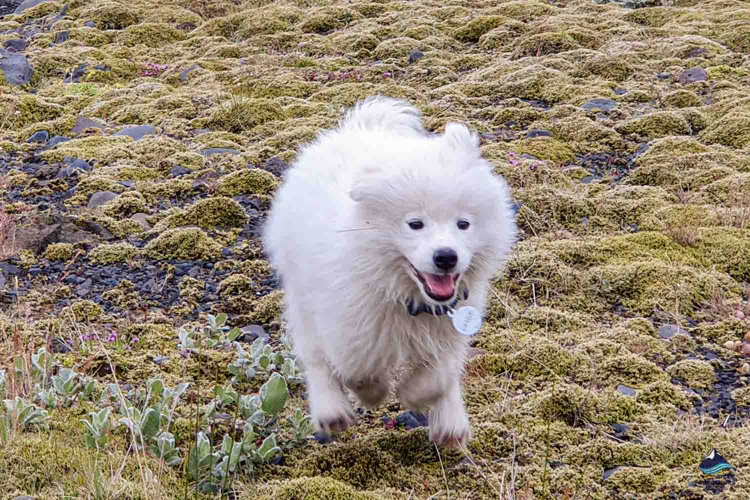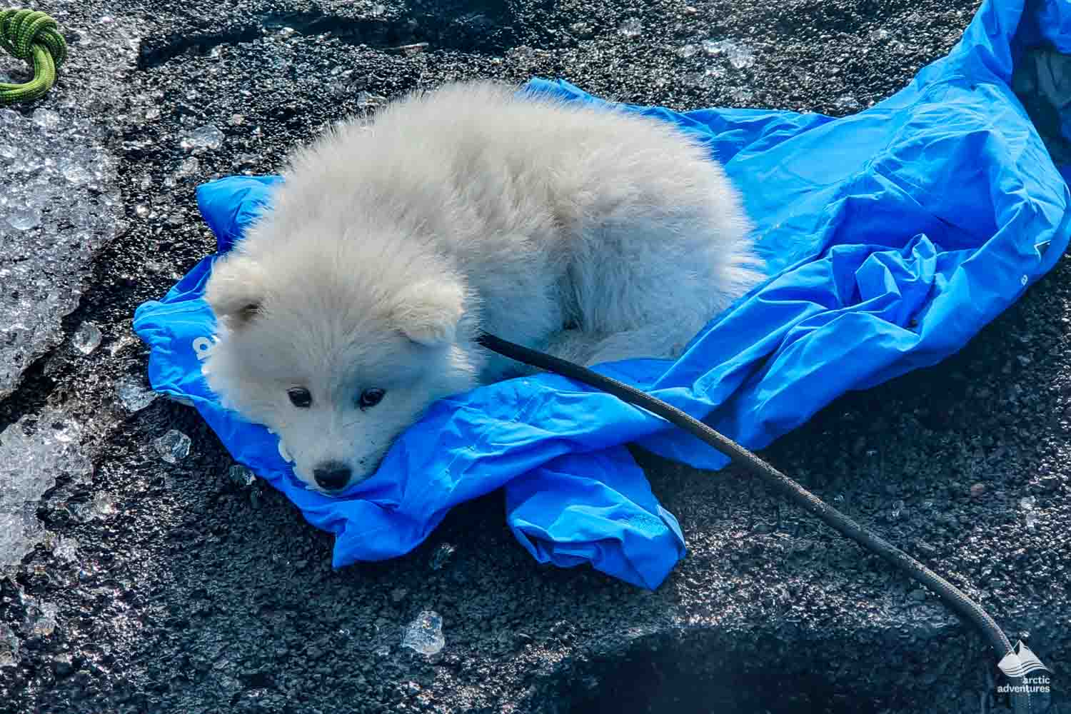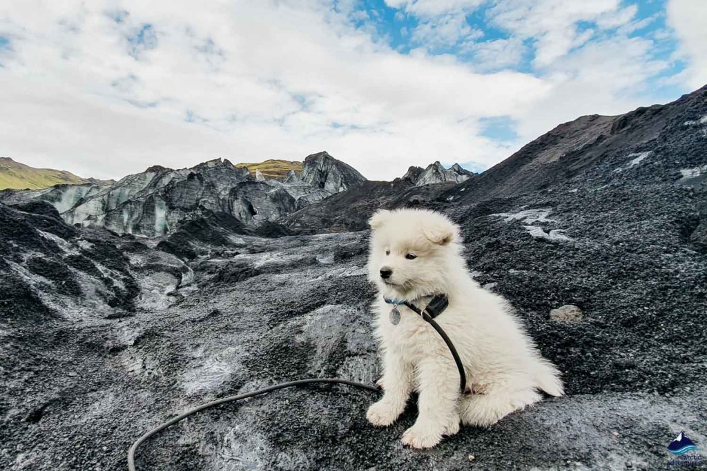 It was a clear, blue day when our expert wilderness guide Francesco was hiking his usual route on Sólheimajökull Glacier, alongside his adorable Samoyed puppy, Bilbo Baggins.