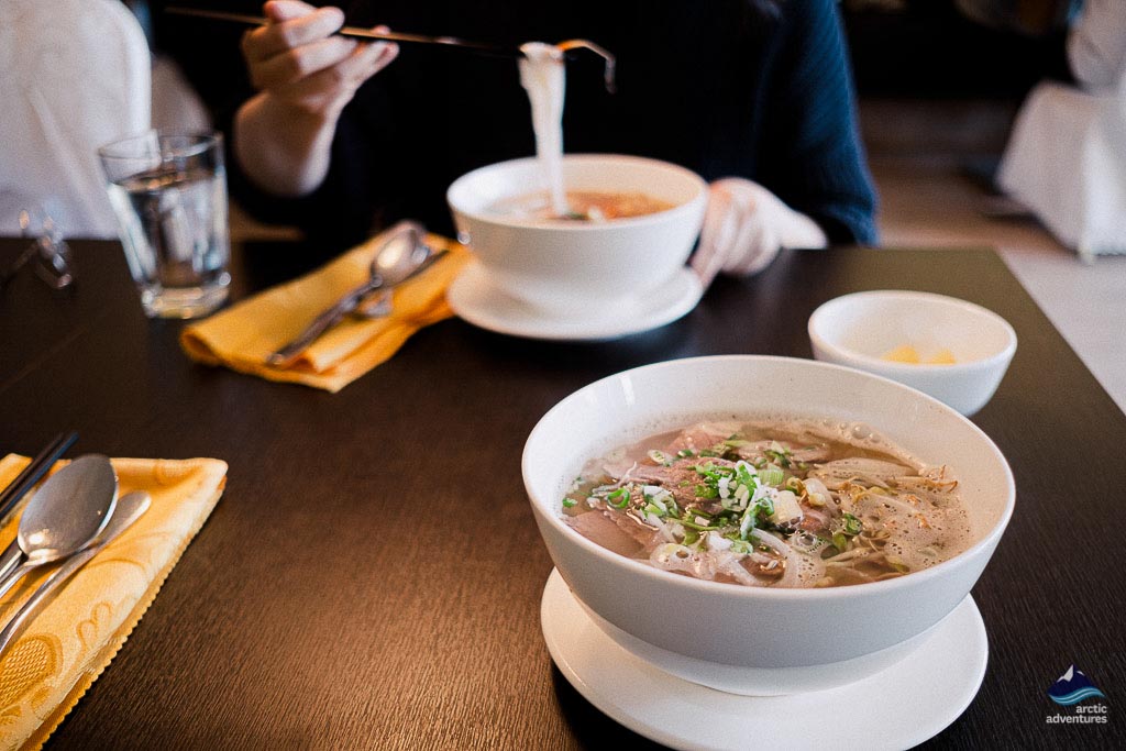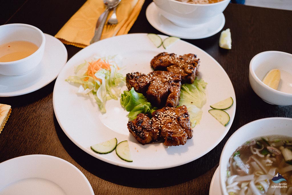One of the oldest Vietnamese establishments in Reykjavik is the Vietnam Restaurant. On the main street of Laugavegur in the capital, the one-floored restaurant is inside an ivory building, with large windows and an salmon-pink antique wooden door. Their menu has quite a lot of options featuring popular pho (rice noodles) dishes. The decent portion is friendly for tourists who want a filling meal.
