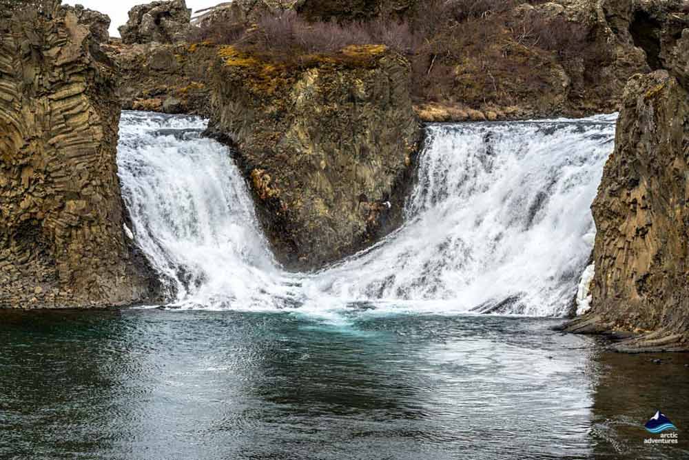 Juwel bezeichnet, weil er weniger Aufmerksamkeit bekommt als seine berühmten Nachbarn in der Umgebung. Wenn Sie einen Wasserfall abseits der Massen bevorzugen, nehmen Sie die Bergstraße (F 26) nach Hrafnabjargafoss! Sie werden mit einer majestätischen Serie spektakulärer Fluten weißen Wassers über schwarzem Basalt belohnt. Im Sonnenschein oder unter grauem Himmel ist dies eine spektakuläre Aussicht.