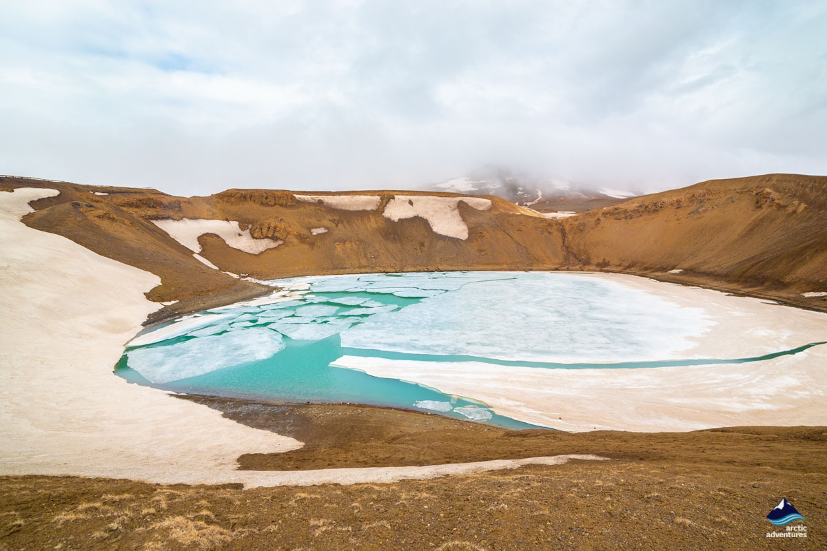 Zum Askja-Krater gehören einige Vulkane, darunter Islands bekanntester Vulkan Víti, dessen Name ‚Hölle‘ bedeutet. Víti ist ein explosiver vulkanischer Krater, in dem sich Wasser gesammelt hat, das etwa 30°C warm ist. Deshalb wurde der Krater zu einer beliebten Badestelle, aber wir empfehlen ihn nur, wenn Sie sich vorher genau darüber informiert haben. Der Weg hinunter ist ebenfalls sehr rutschig, insbesondere bei nassem Wetter.