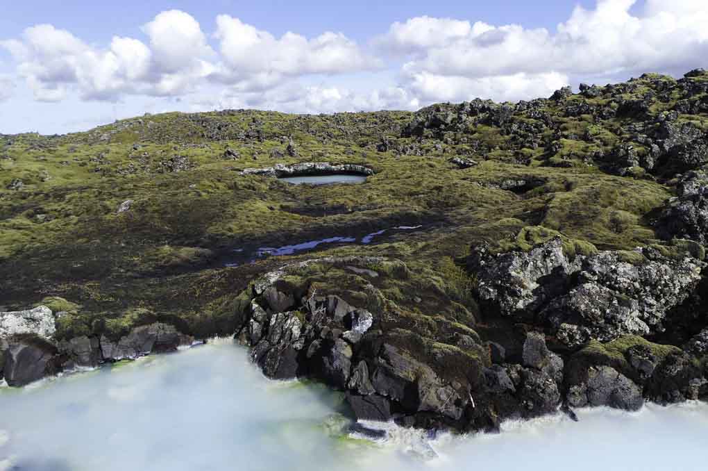 Das Wasser, die Mineralien, der weiße Siliziumschlamm, die grüne Alge, die Farbe der Lagune, der Dampf und die moosbedeckte Lava – sind alle natürlich.