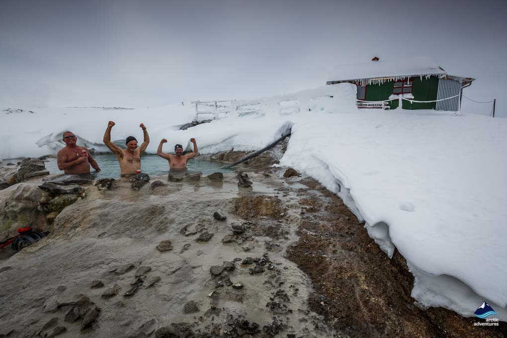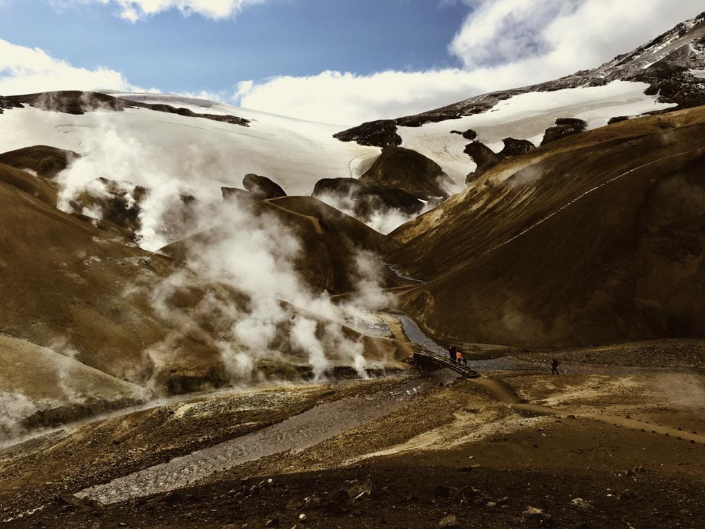 In Reykjadalur, der heißen Quelle im Tal hinter Hveragerði, vermischt sich das Wasser mit dem kalten Wasser des Flusses und bietet eine hervorragende Badetemperatur. Flussaufwärts wird es wärmer und flussabwärts kälter. Dies gibt Ihnen die Möglichkeit genau die Temperatur zu finden, die Sie bevorzugen. Gut zu wissen, ist, dass der “heiße Fluss” keine Umkleiden hat und man ein bisschen Wandern muss, bis man ihn erreicht.
