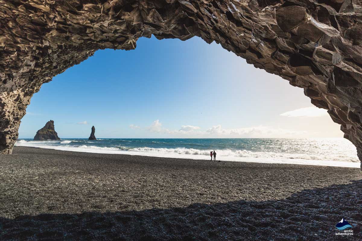 Inmitten des Berges Reynisfjall, der sich hoch über dem schwarzen Sandstrand erhebt, werden Sie eine fantastische Basaltkolumnen-Höhle finden. Wenn Sie sich nähern, werden Sie bemerkten, dass es eine natürlich geformte Höhle in der Wand gibt – ein Muss für alle, die den Reynisfjara-Strand besuchen!