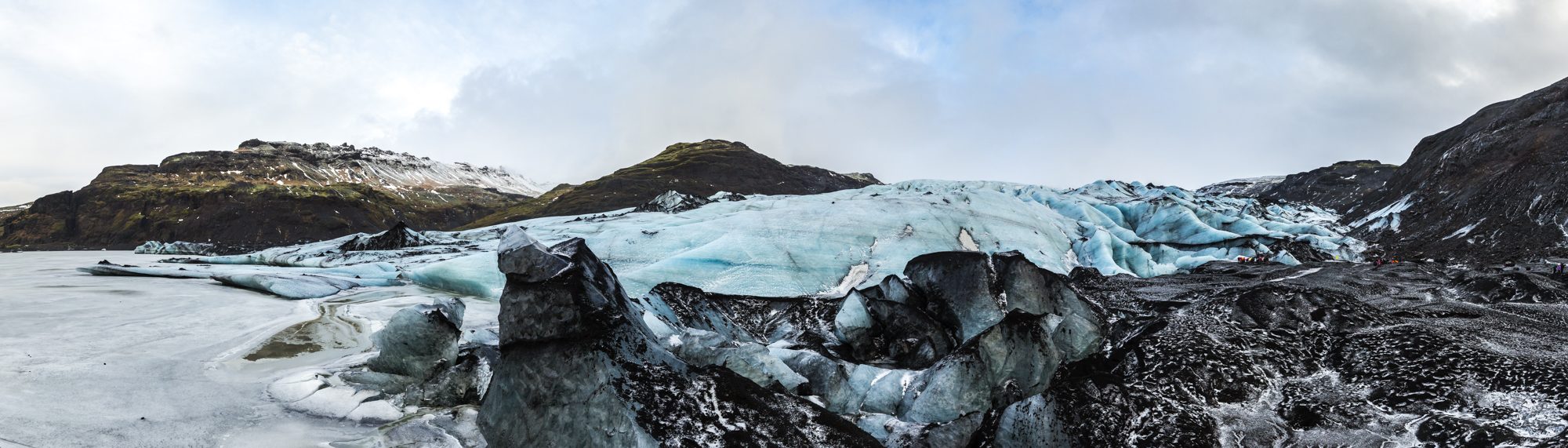 Der Solheimajökull-Gletscher ist unfassbar reich an dramatischen Eisformationen inklusive Schluchten, zerklüfteten Spitzen und Senken. Sólheimajökull ist eine Gletscherzunge oder ein Ausläufer des Mýrdalsjökull-Gletschers, dem viertgrößten Gletscher in Island, unter dem der mächtige und gefürchtete Katla Vulkan ominös unter der Eisdecke lauert.