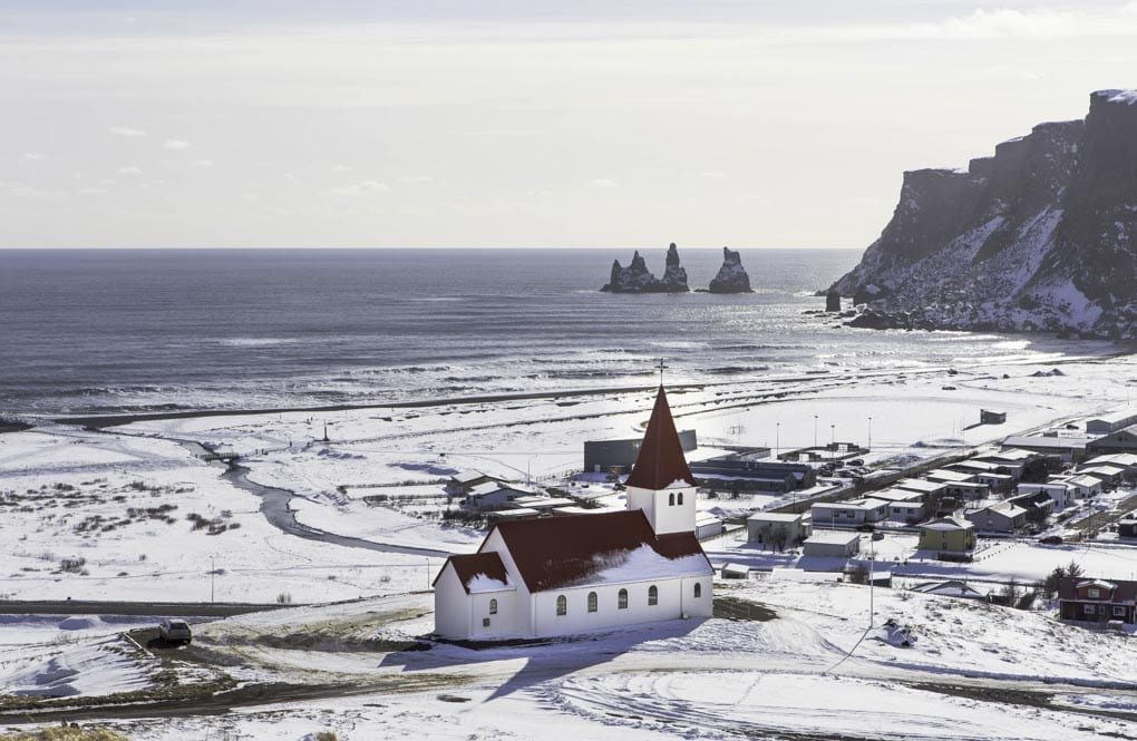 Vik ist das südlichste Dorf Islands und liegt etwa 110 km von Reykjavík entfernt, direkt südlich vom Vulkan Katla, der sich unter dem Mýrdalsjökull-Gletscher befindet. Viele von ihnen haben bestimmt bereits ein Foto von Vík gesehen, das eine rot bedachte Kirche zeigt, welche die anderen Häuser der Ortschaft überragt.