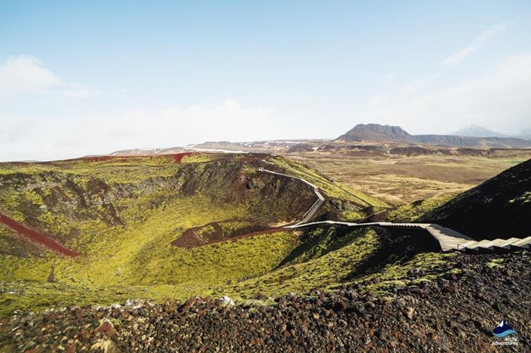 An diesem Tag wachen wir im Lavaparadies in der Gegend von Borgarfjörður in Westisland auf, die von Lonely Planet als eines der besten Reiseziele 2016 prämiert wurde. Unser erster Halt des Tages ist für die meisten Reisenden recht unüblich, aber einer unserer Favoriten: der weniger bekannte, aber wirklich wunderbare Vulkankrater Grábrók. Die Wanderung nach ganz oben, um einen Blick in den Krater zu werfen, ist kurz und es definitiv wert, da sowohl der Pfad als auch der finale Ausblick aus einem Film stammen könnten.