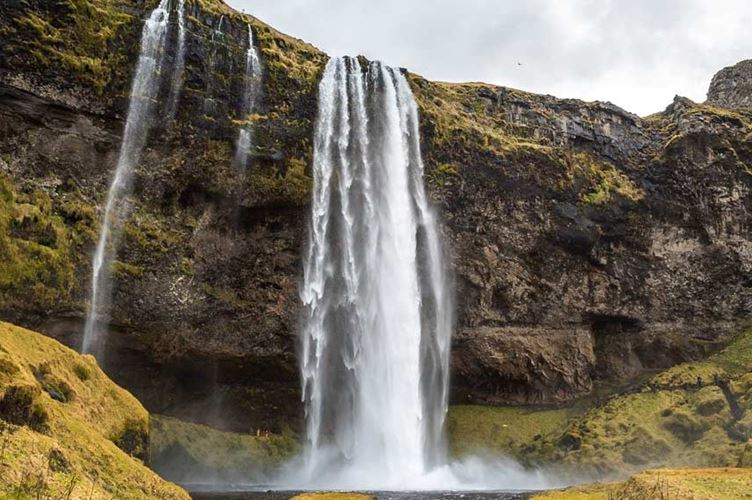 An einem klaren Tag hat man eine tolle Sicht auf den Berg Hekla auf dem Weg zum Seljalandsfoss, einem der ungewöhnlichsten Wasserfälle der Welt. Sie können hinter dem Wasserfall herlaufen und ihn von allen Seiten bestaunen.