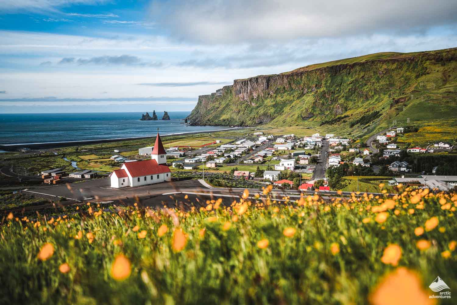 Hier in Reynisfjara können Sie die immense Kraft des Atlantischen Ozeans miterleben. Sie können auch eine schwarze Basalthöhle besuchen und die aus dem Meer aufragenden Reynisdrangar-Basaltstapel bewundern. Der Legende nach sind es nichts anderes als Trolle, die von der aufgehenden Sonne in Felsen verwandelt wurden.