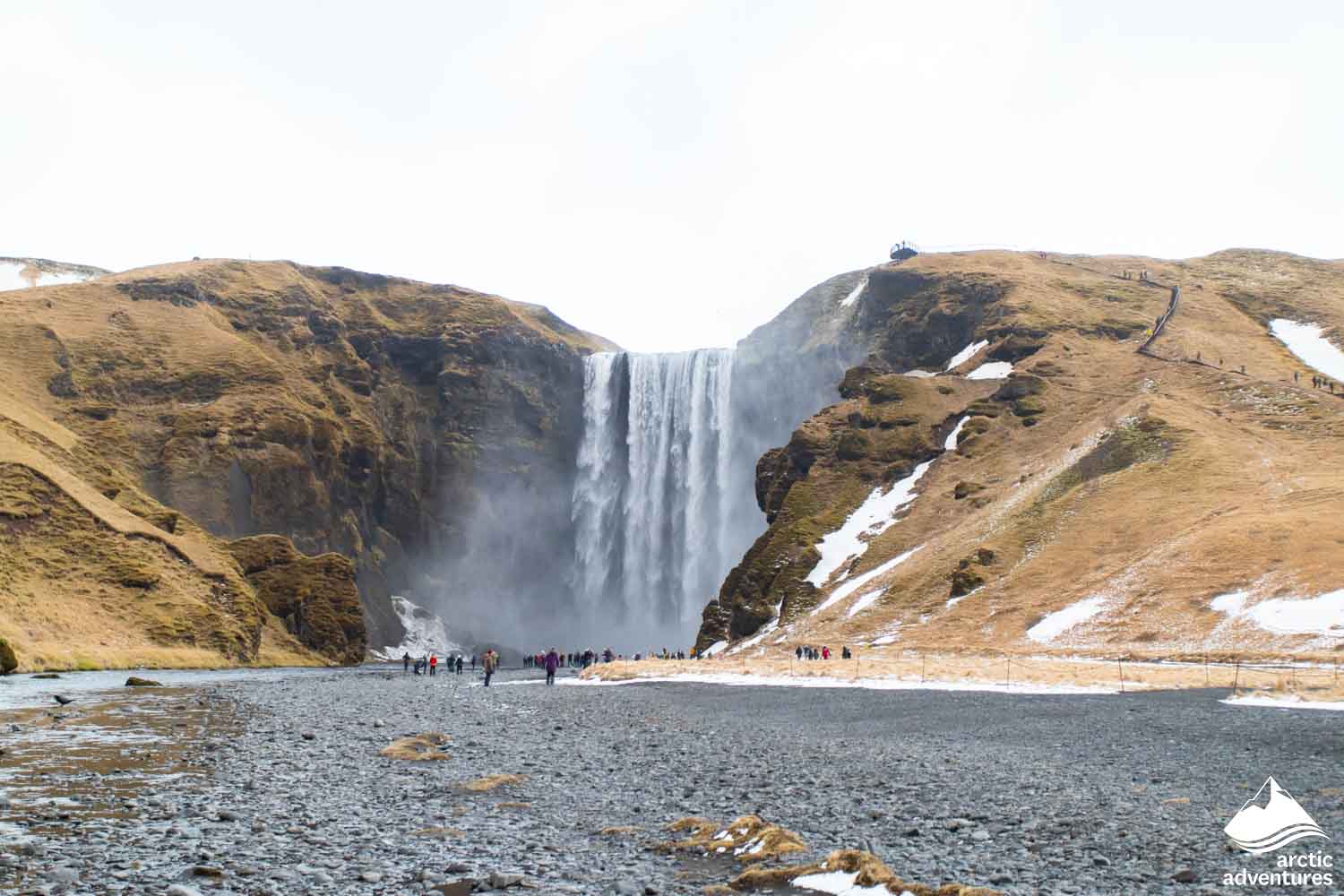 Danach führt uns unsere Tour zum Skógafoss, einem erstaunlichen 60 Meter hohen Wasserfall, der in den darunter liegenden Pool fällt. Es wird angenommen, dass tief in diesem Becken, unterhalb des Wasserfalls, der Wikingerschatz liegt. Sie können auch 527 Stufen nehmen, die zu einem Panoramablick über den Wasserfällen führen.