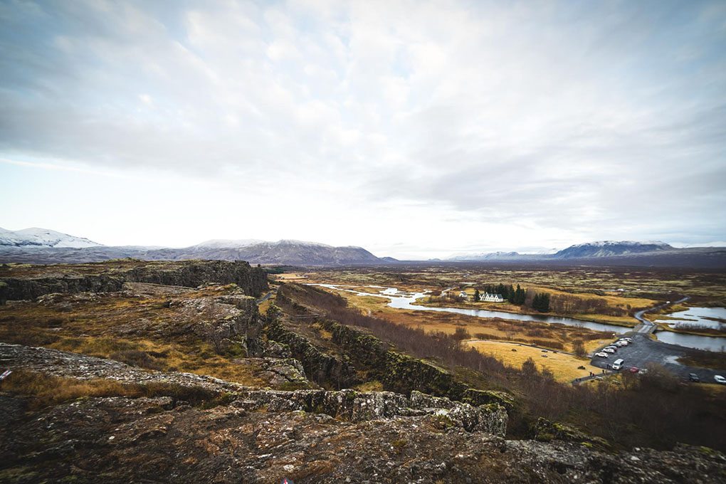 Heute besichtigen wir als erstes den Goldenen Kreis. Wir beginnen mit dem Þingvellir-Nationalpark (Thingvellir), einer UNESCO Weltkulturerbestätte aufgrund seiner Geologie und Geschichte. Die Isländer gründeten hier Ihr Parlament Alþingi im Jahre 930 nach Christus, womit es das älteste noch bestehende Parlament der Welt ist. Die eurasischen und nordamerikanischen Kontinentalplatten treffen hier aufeinander und kreieren eine Schlucht, die jedes Jahr breiter wird.
