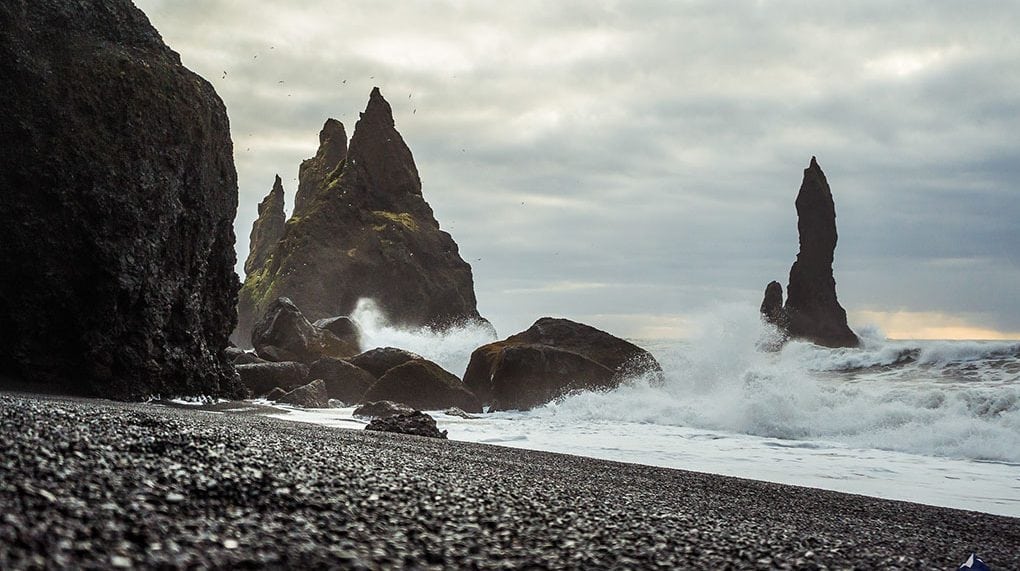 Sobald Sie Ihre Reise in Richtung des mächtigen Sólheimajökull-Gletschers fortsetzen, empfehlen wir auch einen Halt bei Dyrhólaey, einem zerklüfteten Gesteinsbogen, der an ein dunkelblaues Fenster zur See erinnert. In Kombination mit dem prächtigen schwarzen Strand neben Reynisdrangar, wo weiß schäumende Wellen einen hübschen Kontrast zum dunklen Vulkansand darstellen, und den eindrucksvollen Basaltklippen, die in unfassbare zylindrische Steinformationen geschürft wurden, ist dies ein atemberaubender Anblick. Eine andere Option ist das malerische Dorf Vík, gelegen am Fuße eines mächtigen Gletschers.