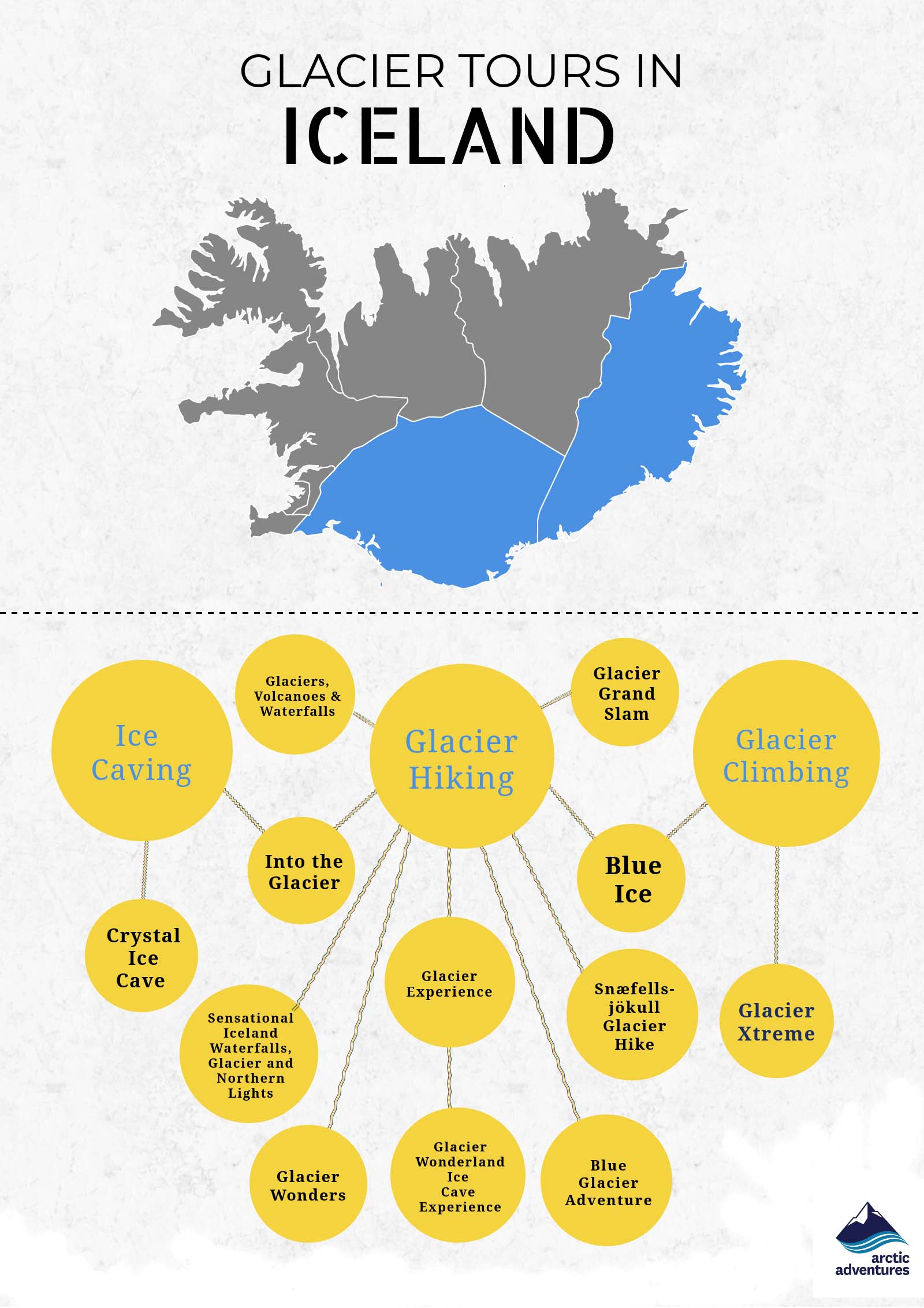 Arctic Adventures bietet Gletscher-Erkundungen mit verschiedener Dauer und Schwierigkeitsgraden an. Wir bieten Gletscherwanderungen, Eisklettertouren und Eishöhlen-Erkundungen ab drei verschiedenen Orten in Island an: Skaftafell, Sólheimajökull und Reykjavík. Ob Sie bereits ein erfahrener Gletscherprofi sind oder ein kompletter Anfänger, wir haben mit Sicherheit die richtige Tour für Sie.