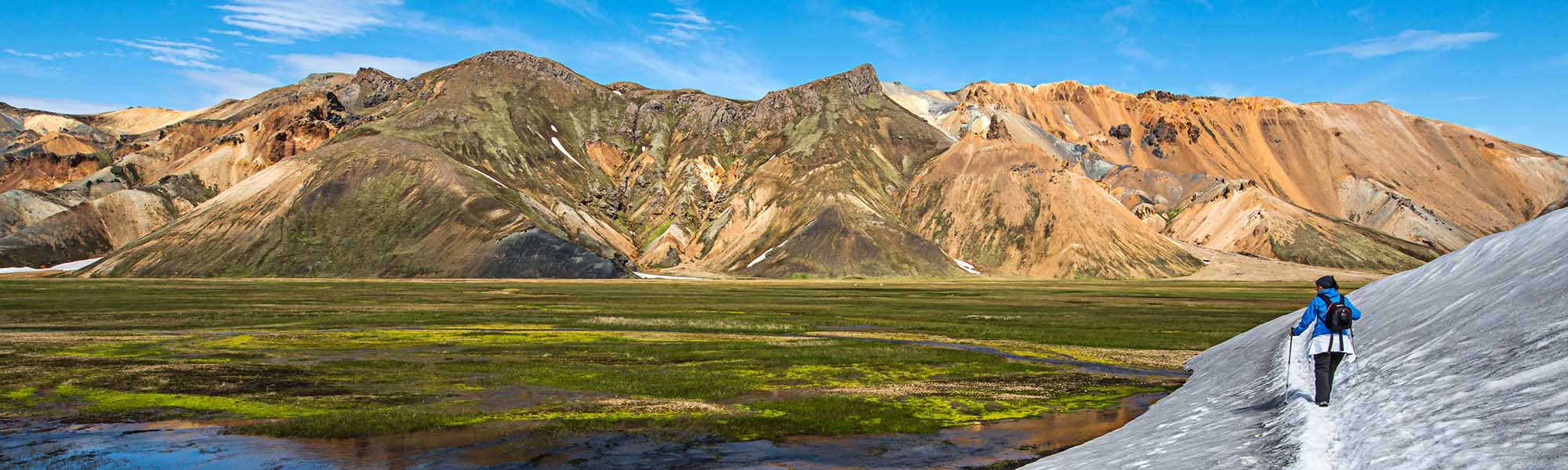 Direkt am Rande Islands Innland, liegt das geothermale Wunderland Landmannalaugar, umgeben von unberührter Natur und schneebedeckten Bergen sowie mondgleichenden Lavafeldern. Landmannalaugar bietet heiße Quellen und eine der beste Badeerlebnisse Islands.