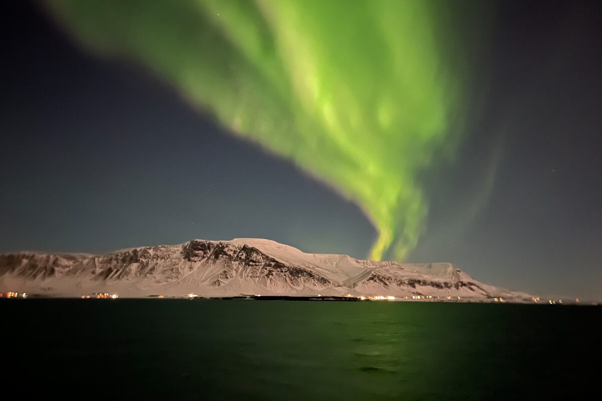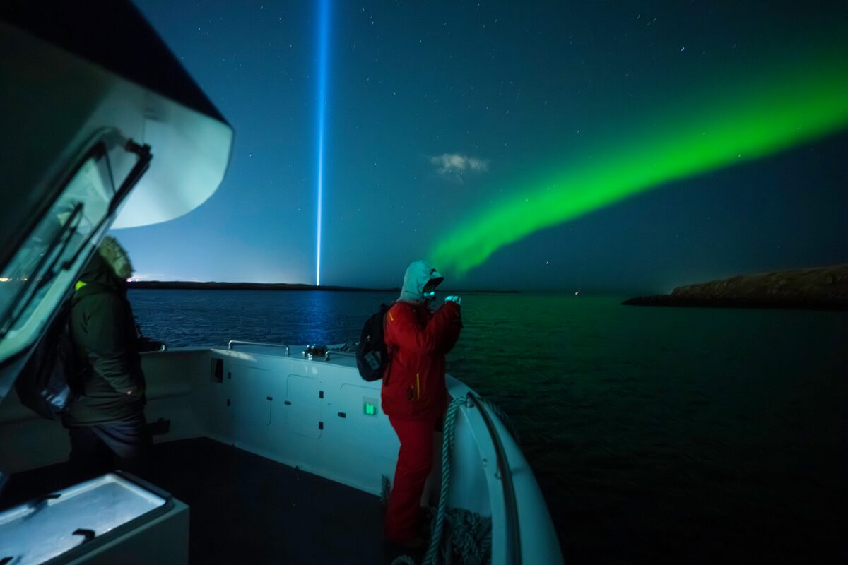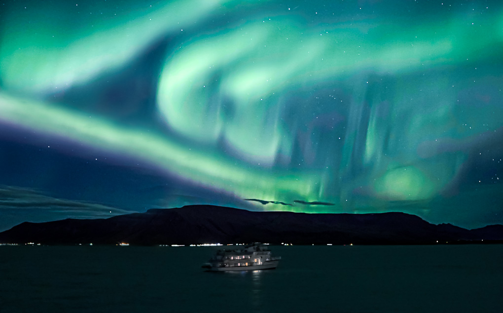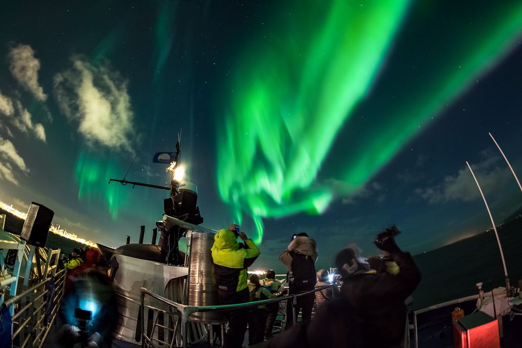 Beobachten Sie die spektakulären Farben der Nordlichter von einem Boot aus. Auf dem Nordatlantik sind Sie ein Teil der Natur, die dieses tanzende Wunder des Nordens erschafft.