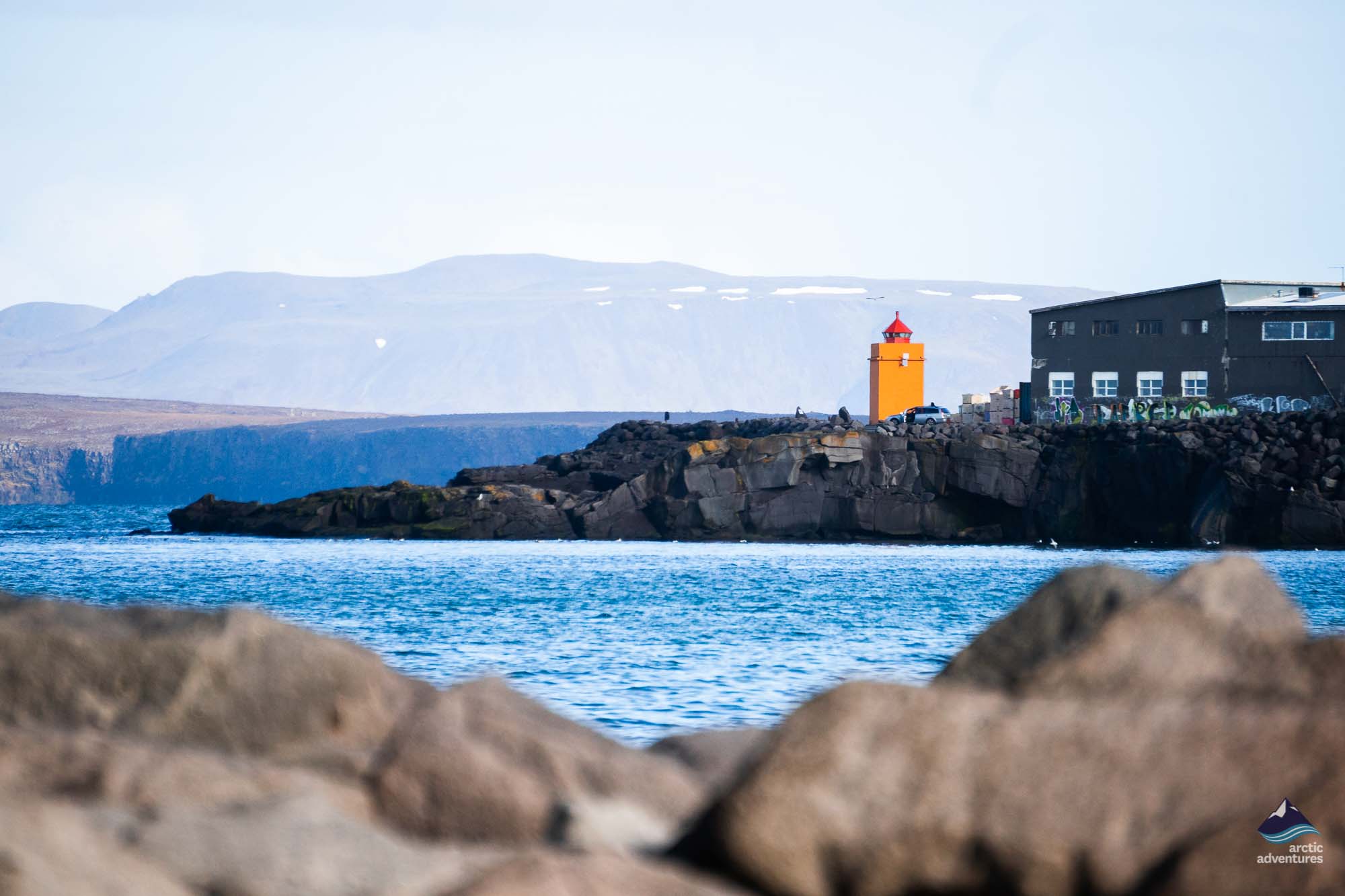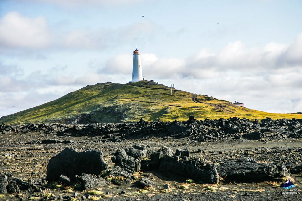 Geradewegs neben den Klippen befindet sich der älteste und populärste Leuchtturm in Island: Reykjanesviti. Ursprünglich wurde der Leuchtturm 1878 erbaut, jedoch 8 Jahr später durch ein schweres Erdbeben zerstört. Das Gebäude, dass Sie heute sehen können, wurde 1929 errichtet und es wird aufgrund der Klippenerosion vermutlich schon bald ein neues fällig sein. Reykjanesviti misst in der Höhe 31 Meter und liegt 73 Meter über dem Meeresspiegel. Die lange Antenne auf der Spitze des Daches dient der Übertragung von DGPS-Signalen auf lange Reichweite.