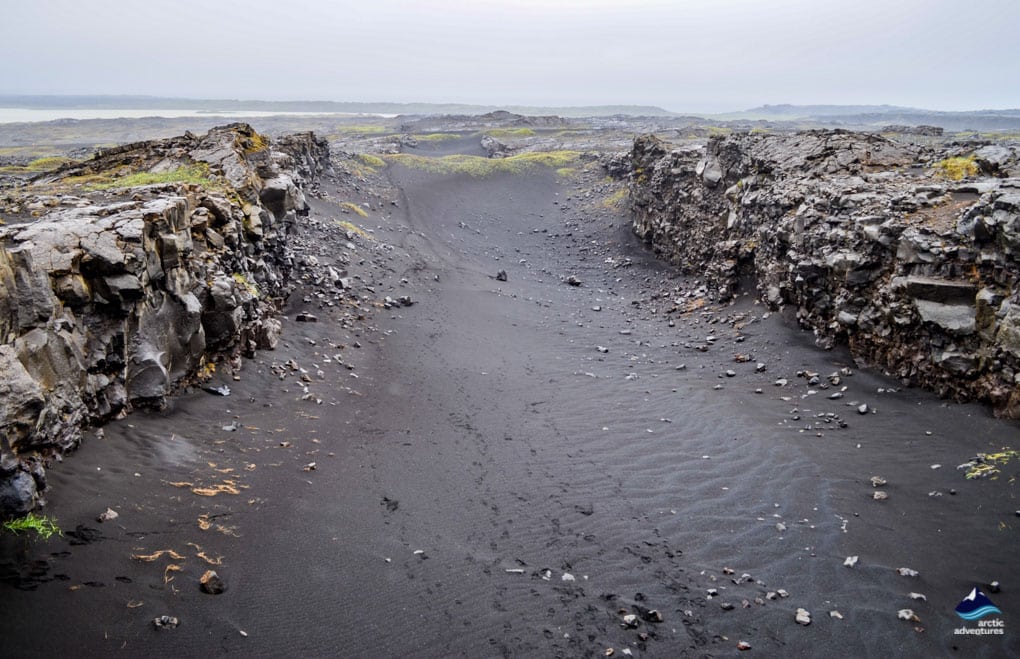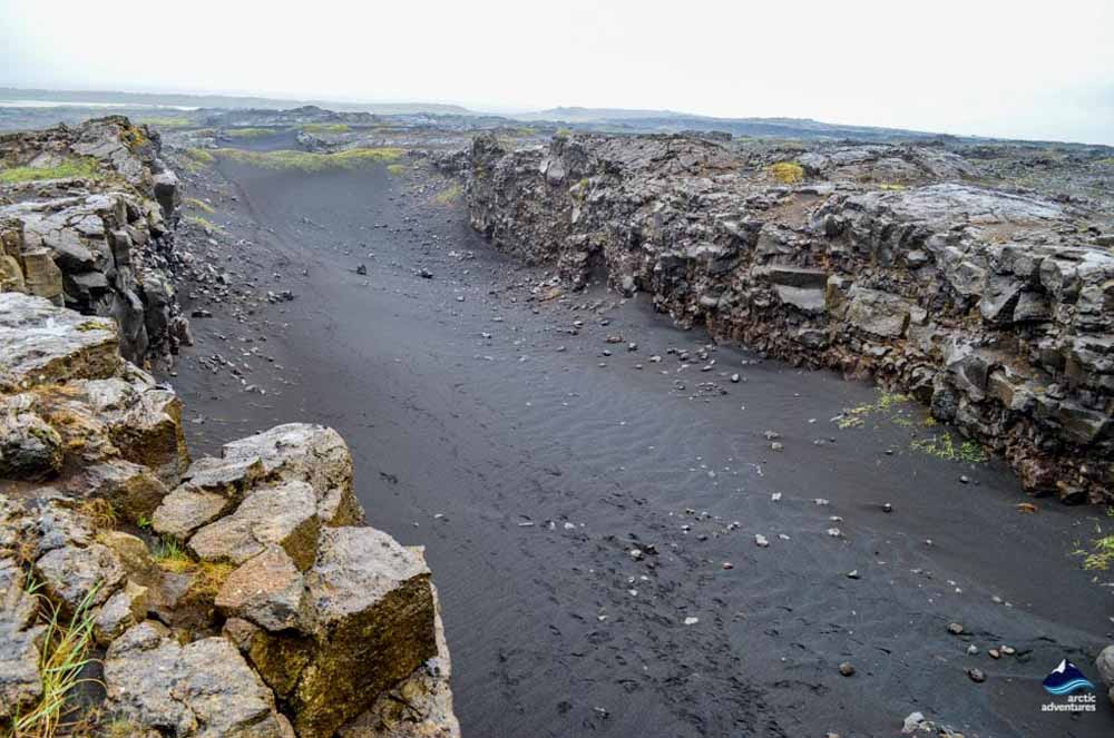 Ein Spaziergang über die berühmte “Brücke zwischen den Kontinenten” ist eines der Highlights der Tour. In Sandvík lässt sich mithilfe dieser Brücke der Spalt zwischen der Eurasischen und Nordamerikanischen Kontinentalplatte in Sekundenschnelle überqueren. Dafür trägt die Brücke auch den Namen Miðlína oder Leif the Lucky zu Ehren Leif Erikssons, einer der berühmten Isländischen Entdecker. Sagen zufolge, war er der erste Europäer, der vor Tausenden von Jahren Nordamerika entdeckt hat. Die 15 Meter (50 Fuß) lange Brücke stellt die symbolische Verbindung zwischen Europa und Nordamerika dar, der alten und der neuen Welt. In der Mitte der Brücke markiert eine Tafel die „Grenzen“ der beiden Kontinente zeichnet eine Grenzlinie zwischen diesen. Auf der einen Seite steht geschrieben „Welcome to America″ und auf der anderen ″Welcome to Europe″.