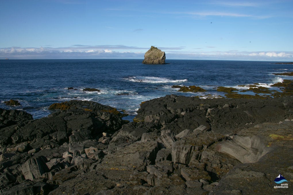 Sollten Sie sich für Wildtiere oder eher gesagt die Vogelwelt interessieren, sind Sie an den Klippen von Valahnúkur genau am rechten Fleck. Das Gebiet beherbergt eine große Kolonie an Seevögeln, darunter Riesenalks, bevor die letzten zwei Exemplare dieser Spezie in der nahegelegenen Insel umkamen. Auf Valahnúkur wird der wunderschöne Küstenabschnitt von hohen, aufschlagenden Wellen unterbrochen und über der See drehen Tausende von Vögeln auf der Suche nach Nahrung ihre Kreise. Valahnúkur setzt sich aus Torfschichten, Pillowlava und Brekzie zusammen, entstanden durch einen einzigen Vulkanausbruch. Seien Sie am Klippenrand vorsichtig, denn dort weht eine starke Brise und die Grasbüschel halten womöglich keinem menschlichen Gewicht stand.
