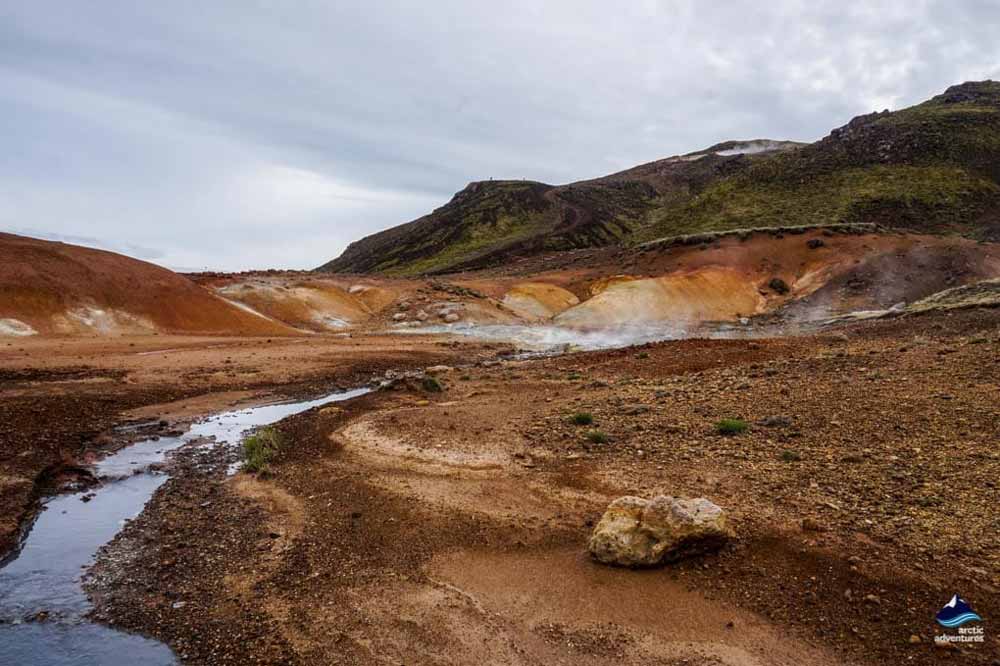 Von dort aus stoßen wir in das Gebiet Krýsuvík vor. Diese bergige Region ist für ihre mehrfarbigen Schwefelablagerungen, welche für die Färbung der Wege sorgen, bekannt. Weiterhin gibt es in dieser Gegend neben bunten Kraterseen und blubbernden heißen Quellen eine Vielzahl an unterschiedlichen Vogelarten, darunter Klippenmöwen, Trottellummen und Tordalks, die oft von den Klippen aus in den Atlantischen Ozean abtauchen.