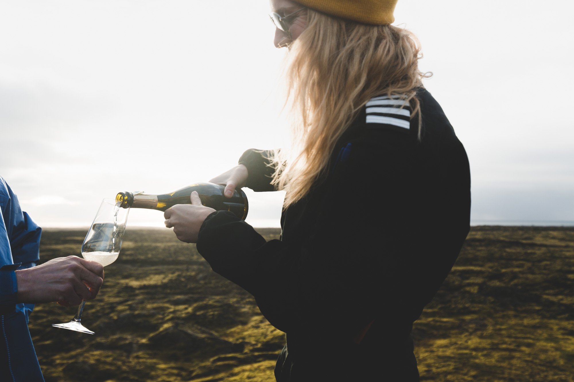 Die Landung auf einem isländischen Berg wird Ihnen einmalige und atemberaubende Aussichten über die gesamte Region eröffnen. Wir öffnen die Flasche Wein und stoßen auf diesen Moment an. Feiern und genießen Sie diese Panorama Aussicht auf die Gebirge, Reykjavík und das glitzernde Meer direkt vor Ihnen.