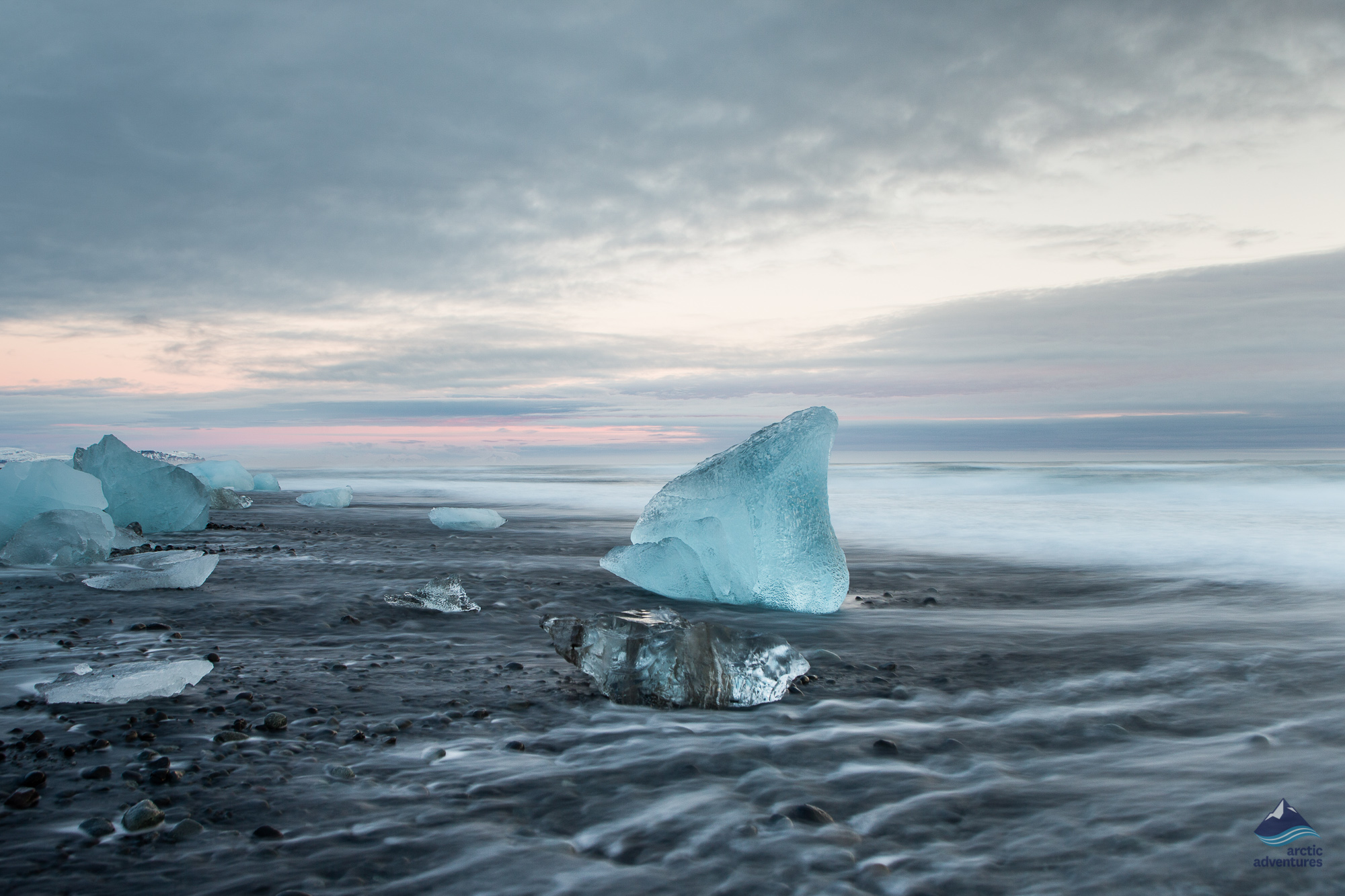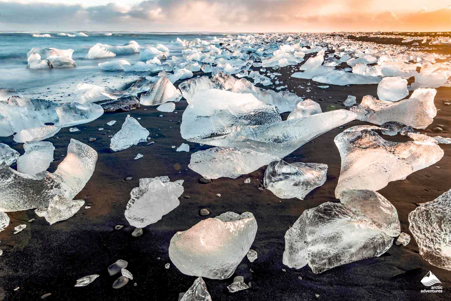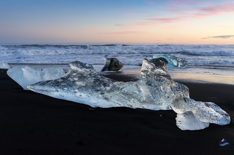 Der schwarze Sandstrand, an dem die Eisberge von den Wellen angeschwemmt werden, wird Diamantstrand genannt. Zusammen sind diese beiden Attraktionen wahrscheinlich die meistfotografierten Naturattraktionen Islands. Jökulsárlón trägt den Spitznamen „Kronjuwel Islands“.