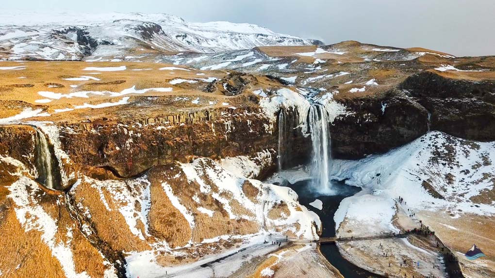 Seljalandsfoss ist einer der berühmtesten Wasserfälle Islands. Er stürzt über 60 m in ein flaches Becken und ist ein echtes Fotomotiv. Der Fluss, der Seljalandsfoss speist, entspringt dem beeindruckenden Vulkangletscher Eyjafjallajökull. Der Hauptgrund für die Einzigartigkeit dieses Wasserfalls ist, dass Sie hinter dem Wasserlauf entlanggehen und den Wasserfall und die Welt aus einer neuen Perspektive betrachten können. Bringen Sie Ihren Regenmantel mit, denn der Nieselregen wird Sie nass machen! (Bitte beachten Sie, dass der Weg hinter dem Wasserfall im Winter gesperrt sein kann, da er zu rutschig und gefährlich ist.)