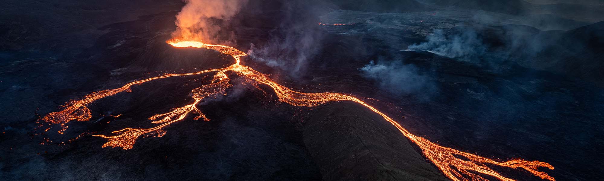 Vulkane erinnern uns an die Schönheit, Macht und Eleganz der Natur und Island hat mehr als genug von Ihnen! Menschen aus der ganzen Welt kommen nach Island, um diese lebendigen Berge, die ihre feurige Flüssigkeit in die Luft spucken und die Welt verändern, zu sehen. Lavahöhlen und dunkle Himmel.