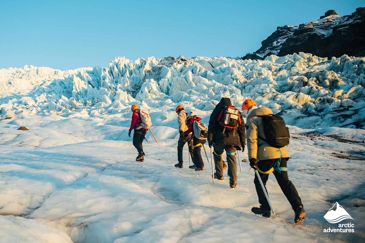 Aujourd’hui, nous essayons une nouvelle expérience glaciaire – la randonnée sur glacier ! Pendant l'hiver, votre guide vous donnera des crampons à glace et tout ce dont vous avez besoin pour parcourir le glacier Vatnajokull. Le glacier est animé, il est toujours en mouvement et en évolution, des caractéristiques incroyables de glace se forment constamment. Votre guide vous expliquera tout sur les gouffres, les crevasses, les cascades de glace et les crêtes, et comment le réchauffement climatique a un impact sur les glaciers d’Islande.