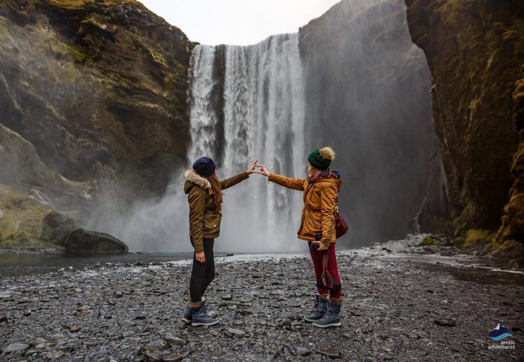 Ensuite, Skógafoss, une chute d’eau vraiment impressionnante qui descend de 60 m dans le calme bassin en contrebas. Il y a 527 marches menant au sommet, donnant un autre point de vue. Le célèbre volcan, Eyjafjallajökull, se dresse bien au-dessus de la cascade, si la visibilité est bonne vous aurez une visibilité sur ce magnifique glacier de montagne.