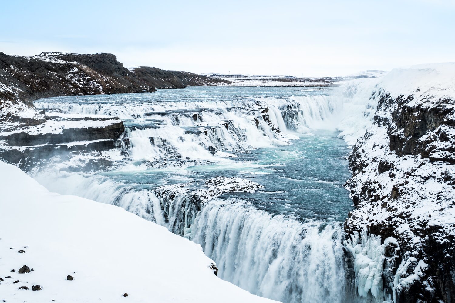 Geysir est la source d’eau chaude qui a donné son nom à ce phénomène lorsque le mot anglais « geyser » a été adopté. Observez la source d’eau chaude Strokkur éclater de grands jets d’eau chaude et de vapeur toutes les quelques minutes et voyez les fumerolles bouillonnantes. La puissante chute d’eau de Gullfoss est la dernière attraction du Cercle d’Or. Admirez la brume dorée et onirique qui s’élève de l’embruns tandis que la Hvítá (la Rivière Blanche) descend de Langjökull (le Glacier Long) en rugissant à travers le canyon. Gullfoss chute de 32 m en deux étapes.