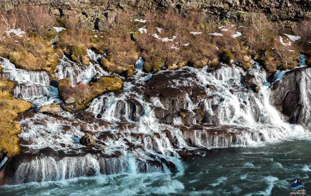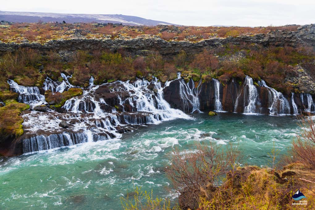 En ce dernier jour, nous nous retrouverons dans l’ouest de l’Islande, une région que Lonely Planet a élue comme l’une des meilleures destinations en 2016. Votre journée commencera par une courte randonnée jusqu’à Grábrók, un cratère volcanique. Par temps clair, il y a des panoramas fabuleux sur le champ de lave et toute la région. Borgarfjörður a beaucoup de sites magnifiques et nous allons nous concentrer sur ceux-ci aujourd’hui. Nous nous arrêtons à la source thermale de Deildartunguhver, à la légendaire cascade de Barnafoss (Chute des Enfants) et à la cascade de Hraunfossar, la cascade atmosphérique très basse et large où l’eau sort littéralement du champ de lave.