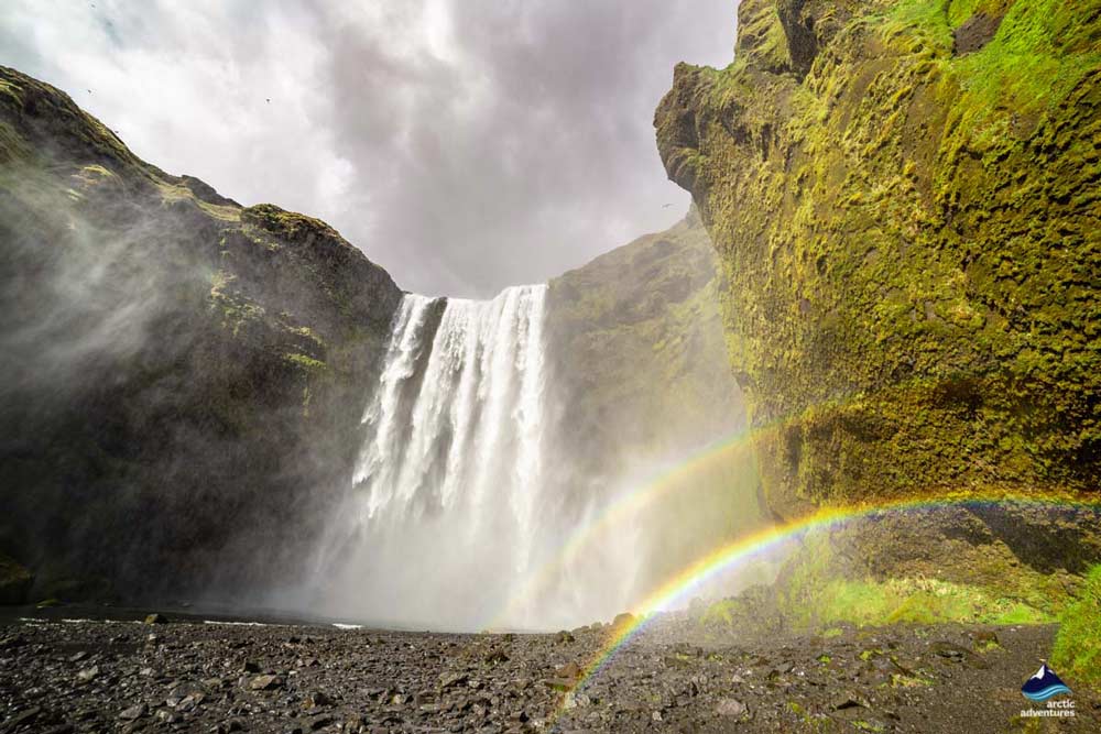 Sur le chemin vers notre hébergement dans un hôtel de campagne près du village de Vík, nous visiterons les chutes d’eau de Seljalandsfoss et Skógafoss. Seljalandsfoss est une cascade très inhabituelle car elle offre un point de vue unique : il est possible de marcher derrière la cascade.
