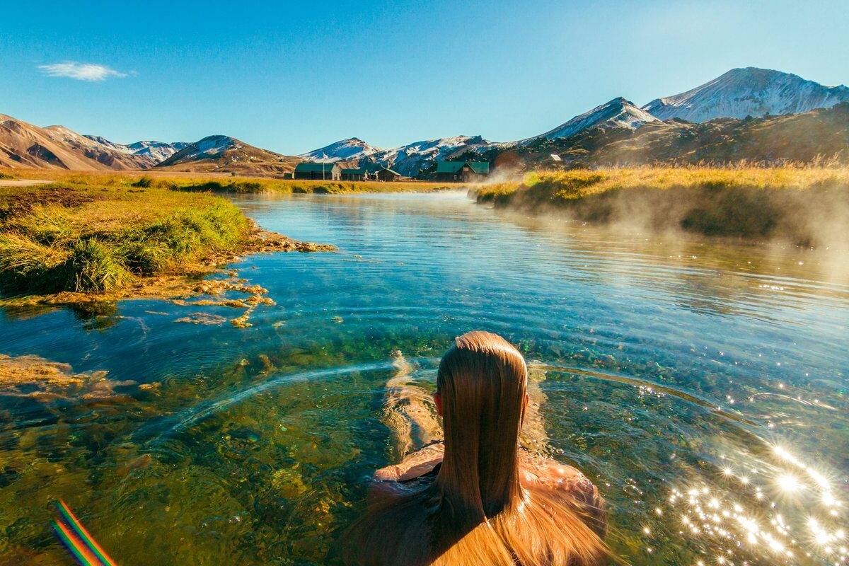Le soir, non loin du refuge de montagne, vous trouverez une étonnante piscine alimentée par une source chaude. Il est fortement recommandé de profiter de quelques moments de baignade aux sources chaudes – avec les paysages mystiques des Hauts-Plateaux Islandais qui s’élèvent autour de vous, c’est vraiment spécial.