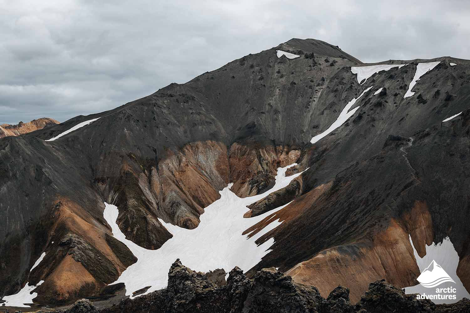 Landmannalaugar est le point de départ pour le sentier Laugavegur. Nous nous frayerons un chemin à travers les merveilles géothermiques qui rendent cet endroit si remarquable, admirerons les couleurs incroyablement vibrantes des montagnes rhyolites et les sources chaudes fumantes. En route vers notre hébergement pour notre première nuit, à Hrafntinnusker, nous verrons la source chaude Stórihver (qui signifie grande source) avant de passer au désert obsidien, dont le noir corbeau a donné son nom, Hrafntinnusker, en Islandais Hrafn signifie corbeau.