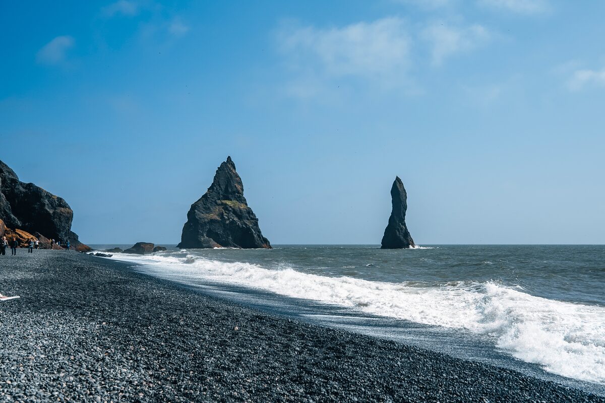 Nous venons vous chercher à l’endroit de votre choix dans Reykjavik et nous nous dirigeons vers l’est, par le col Hellisheiði et à travers la plaine du sud vers Sólheimajajökull, un glacier issu de Mýrdalsjökull, le quatrième plus grand glacier d’Islande. De là, nous nous dirigeons vers la plus célèbre plage de sable noir d’Islande, Reynisfjara, où l’océan Atlantique rugissant frappe violemment la côte. Juste à côté de la plage, les stacks de basalte Reynisdrangar s’élèvent majestueusement de la mer. Notre prochain arrêt est Vík, la ville la plus au sud de l’Islande, où nous nous arrêterons à l’église locale.