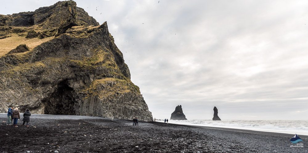 La Plage de Sable Noir de Reynisfjara est un autre endroit incontournable sur la Côte Sud. Une plage de sable volcanique avec de fortes vagues, de belles colonnes de basalte et des stacks de mer dans l’océan. Il y a une grotte dans la montagne de Reynisfjall qui s’élève au-dessus de la plage et tous ces éléments combinés créent la scène la plus épique.
