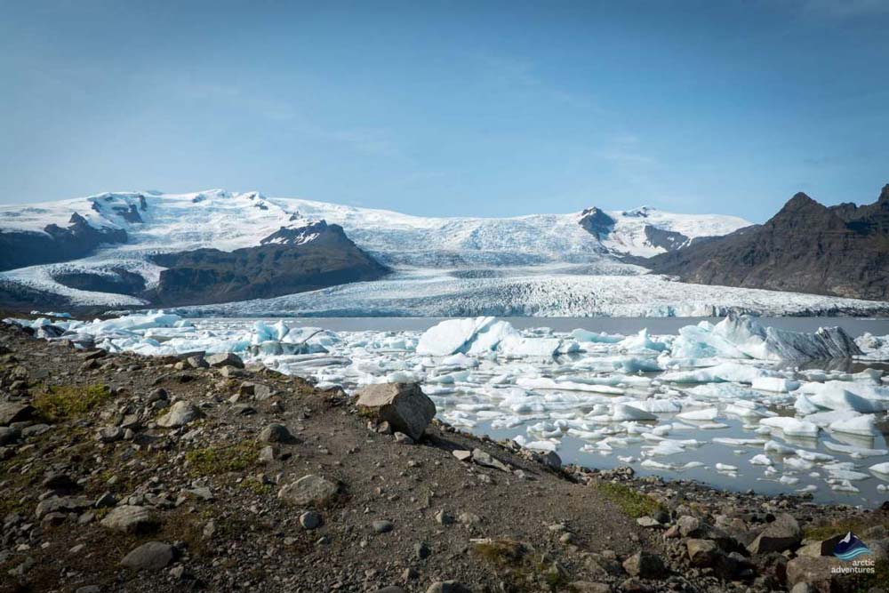 Vous pouvez choisir entre deux options pour cette excursion: soit commencer par une randonnée sur le glacier et terminer par une excursion en bateau dans la lagune glaciaire de Jökulsárlón, soit l'inverse. Vous pouvez choisir une option lors de la réservation. Vous devrez conduire entre les lieux de réunion pour les deux activités, car le transport n'est pas fourni.