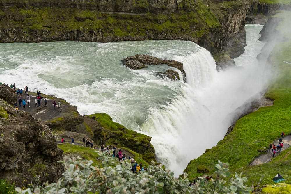 Notre dernier régal est Gullfoss (Chutes Dorées) – une magnifique chute de lave en deux étapes, qui mérite amplement sa réputation de chute la plus populaire en Islande. Ses eaux prennent leur source dans le glacier Langjökull et descendent par Hvítá (la rivière Blanche) – jusqu’à ce qu’elles s’écrasent dans une vallée d’émeraude à Gullfoss. Ses eaux deviennent dorées en cascadant dans l’abîme – créant des photos étonnantes !