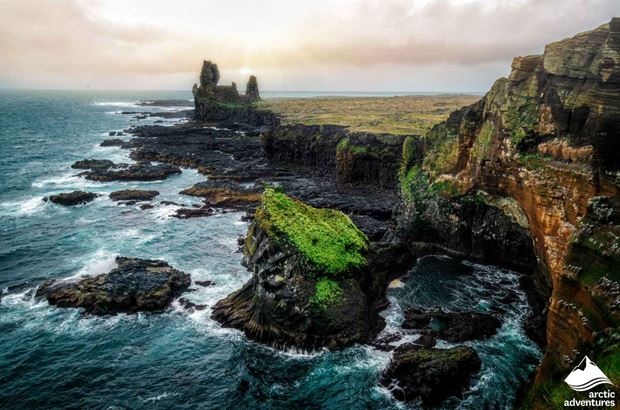 La Peninsule de Snæfellsnes est connu pour avoir une faune colorée et abrite de nombreux oiseaux et phoques. Pour regarder de plus près, nous ferons un arrêt à la belle plage noire près de la ferme Ytri Tunga , un des endroits préférés des phoques locaux. Ensuite, nous visiterons le village pittoresque de Arnarstapi. Il y a peu d’endroits dans le monde qui sont aussi charmants que cet endroit et ici nous ferons une promenade le long de la côte. C’est ici que nous prendrons une pause pour déjeuner.